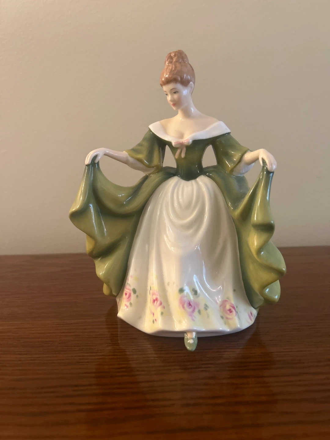 60Selling a lovely vintage figurine. She's wearing a green and white dress with a floral pattern. Perfect for adding a touch of vintage charm to your home! From the Pretty Ladies collection