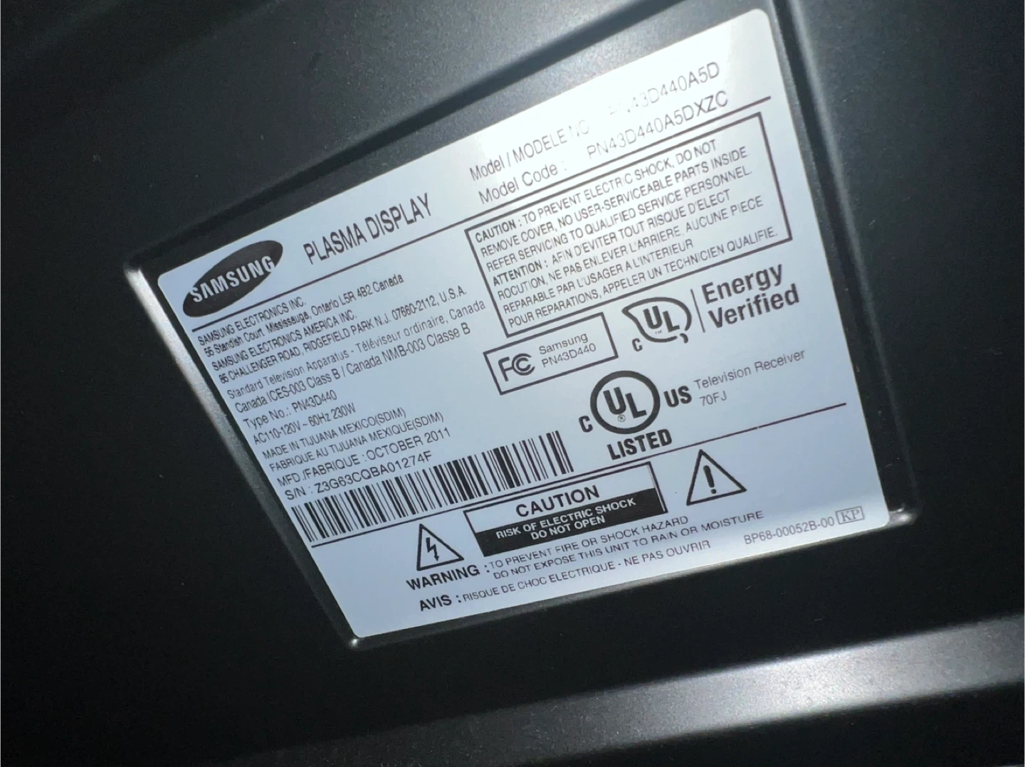 Samsung 43” Plasma TV (model PN43D440A5D) in good working condition. Plasma TVs are known for their great picture quality, deep contrast, and vibrant colors, making it great for movies, sports, or gaming.