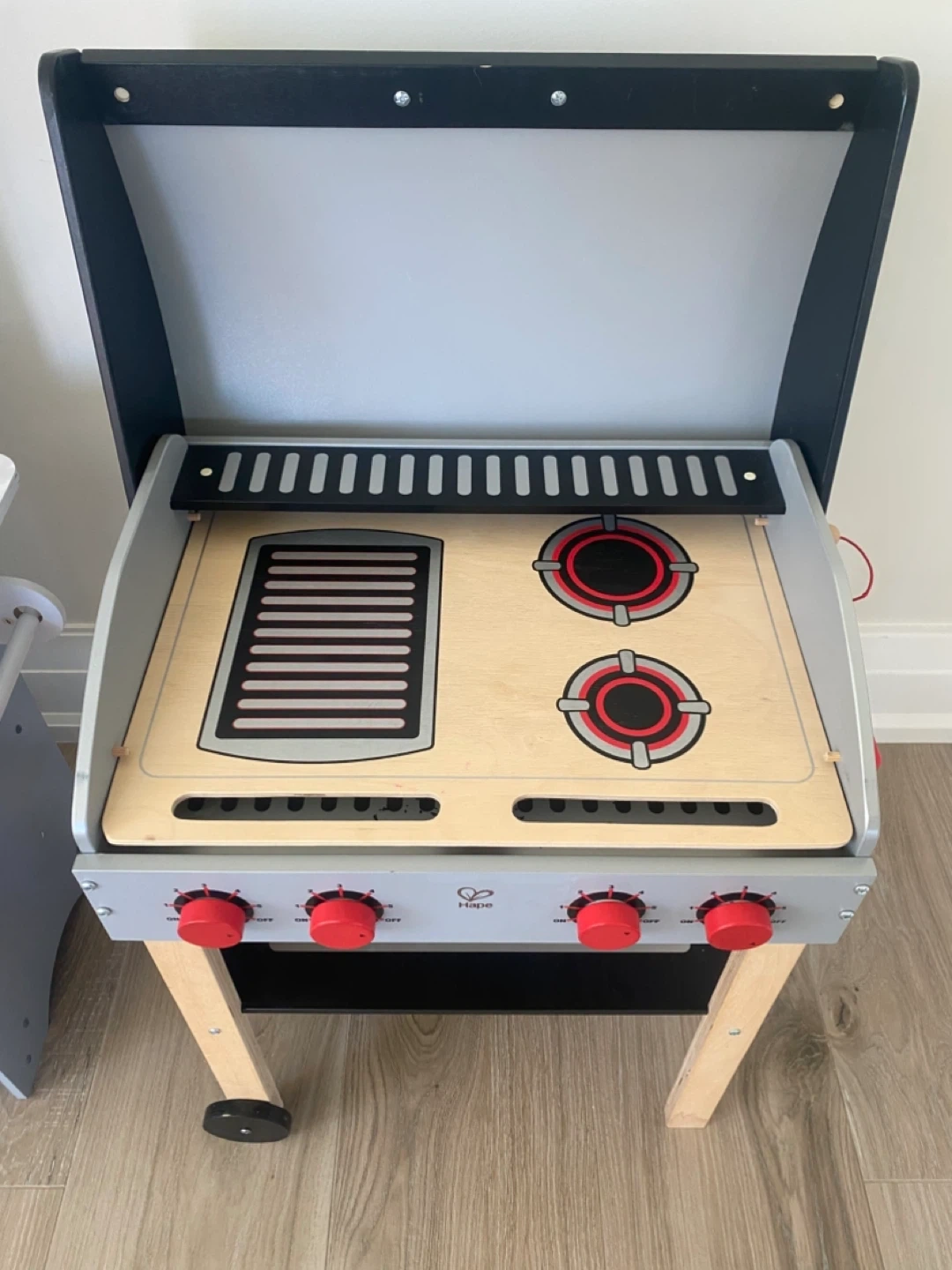 Selling a Hape wooden grill toy for kids. It's in great shape and ready for a new home! Perfect for little chefs who love to pretend play and cook up delicious meals. Hours of fun guaranteed!