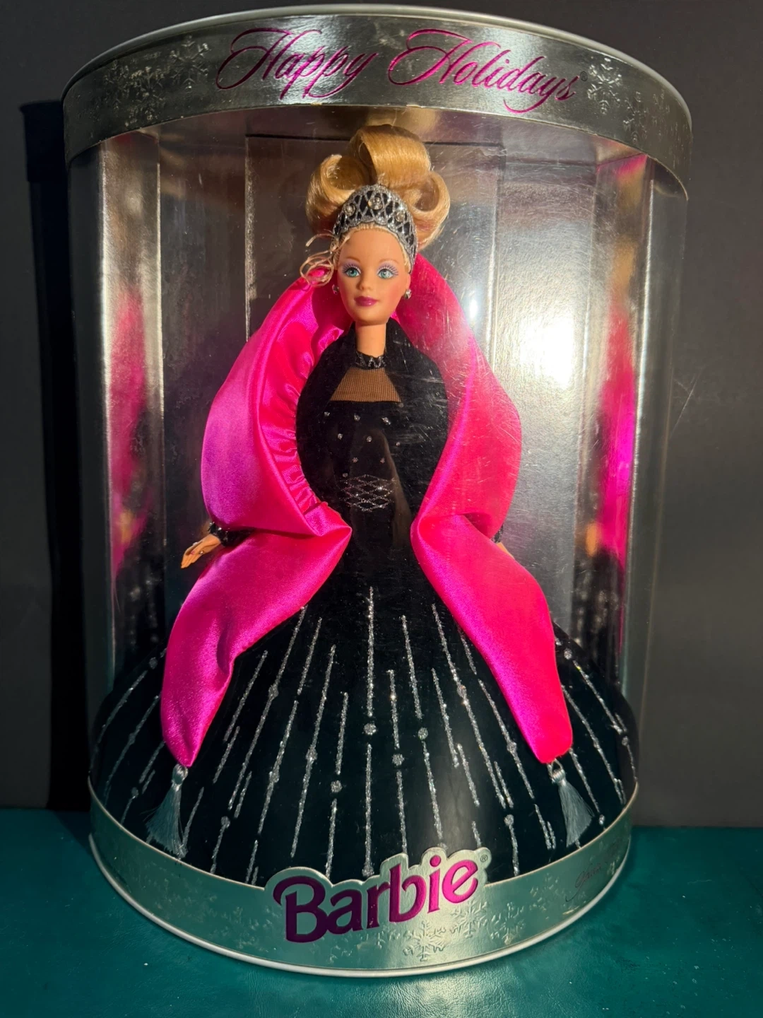 24Selling a 1998 Special Edition Happy Holidays Barbie Doll! It's still in its original packaging. This beautiful doll features a black and silver gown with a pink shawl, perfect for collectors or Barbie enthusiasts. A velvet silhouette in a crystalline dream. The box has some wear, but the doll is in great condition. See pictures for imperfections. Meet up @ Gas n Wash Bedford Park, 65th and Central_Cash on Pick up