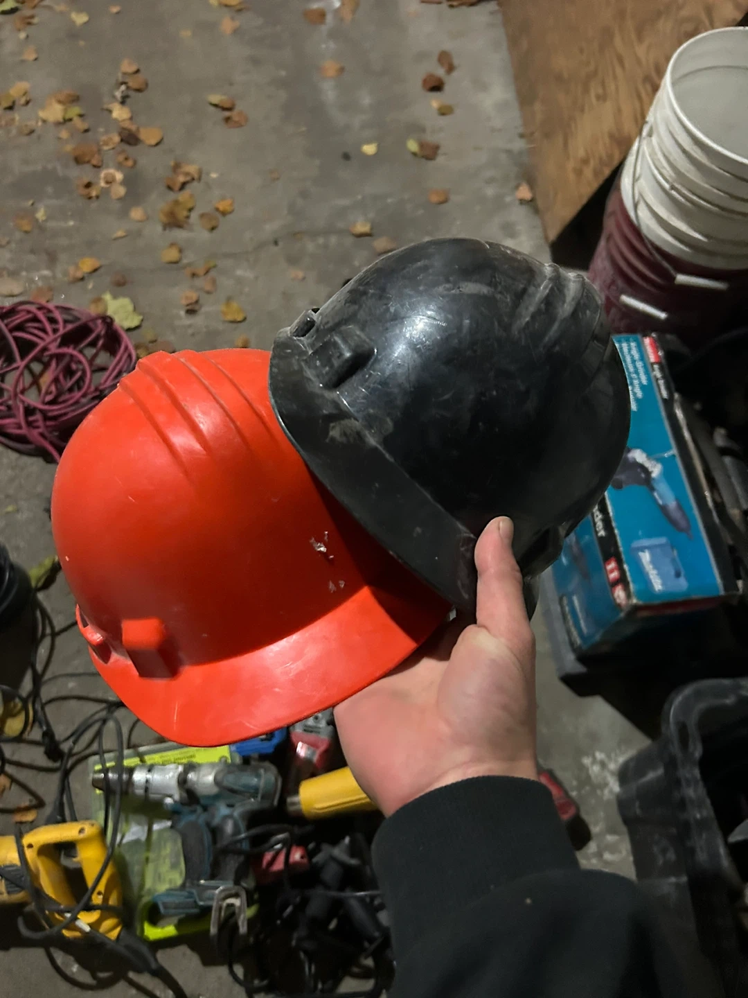 128Two hard hats for sale! One is red and the other is black. Good for construction or any job that requires head protection.
