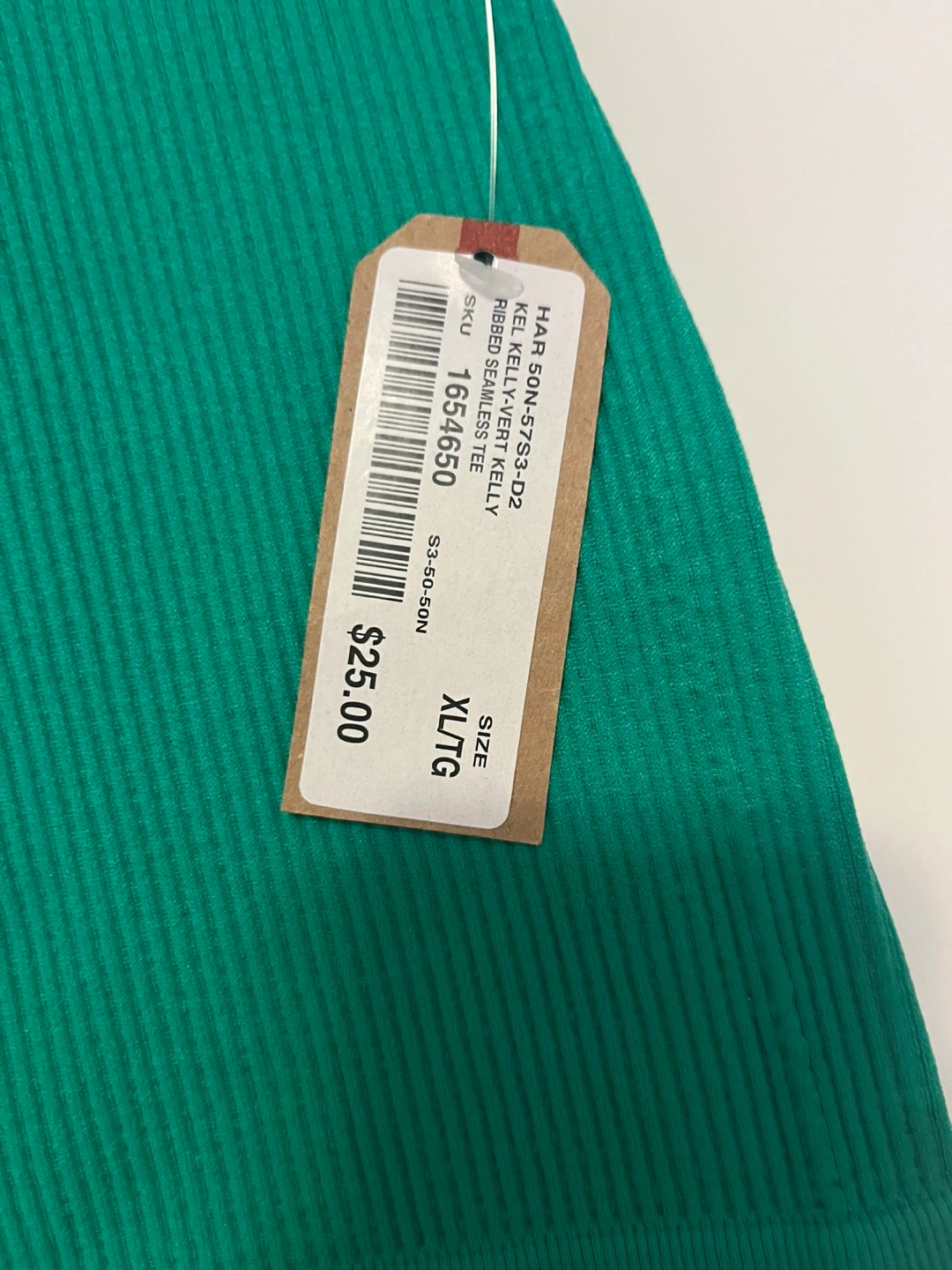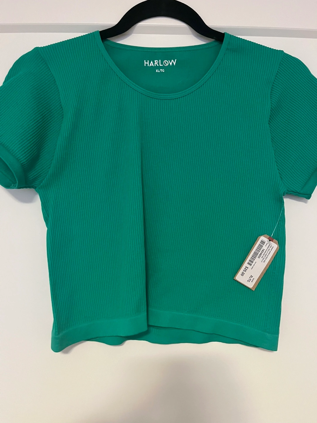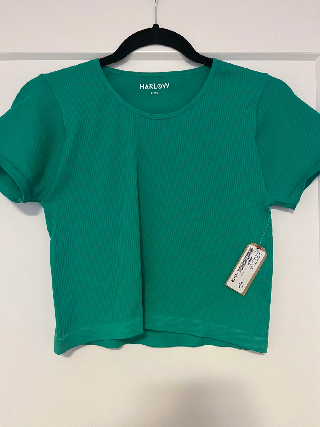 This is a Harlow Kelly Green Ribbed Seamless Tee in size XL/TG. It's a vibrant addition to any wardrobe and is in great condition. Originally bought for $25