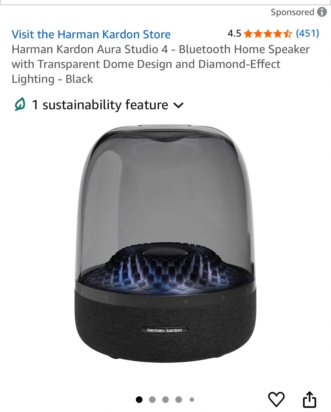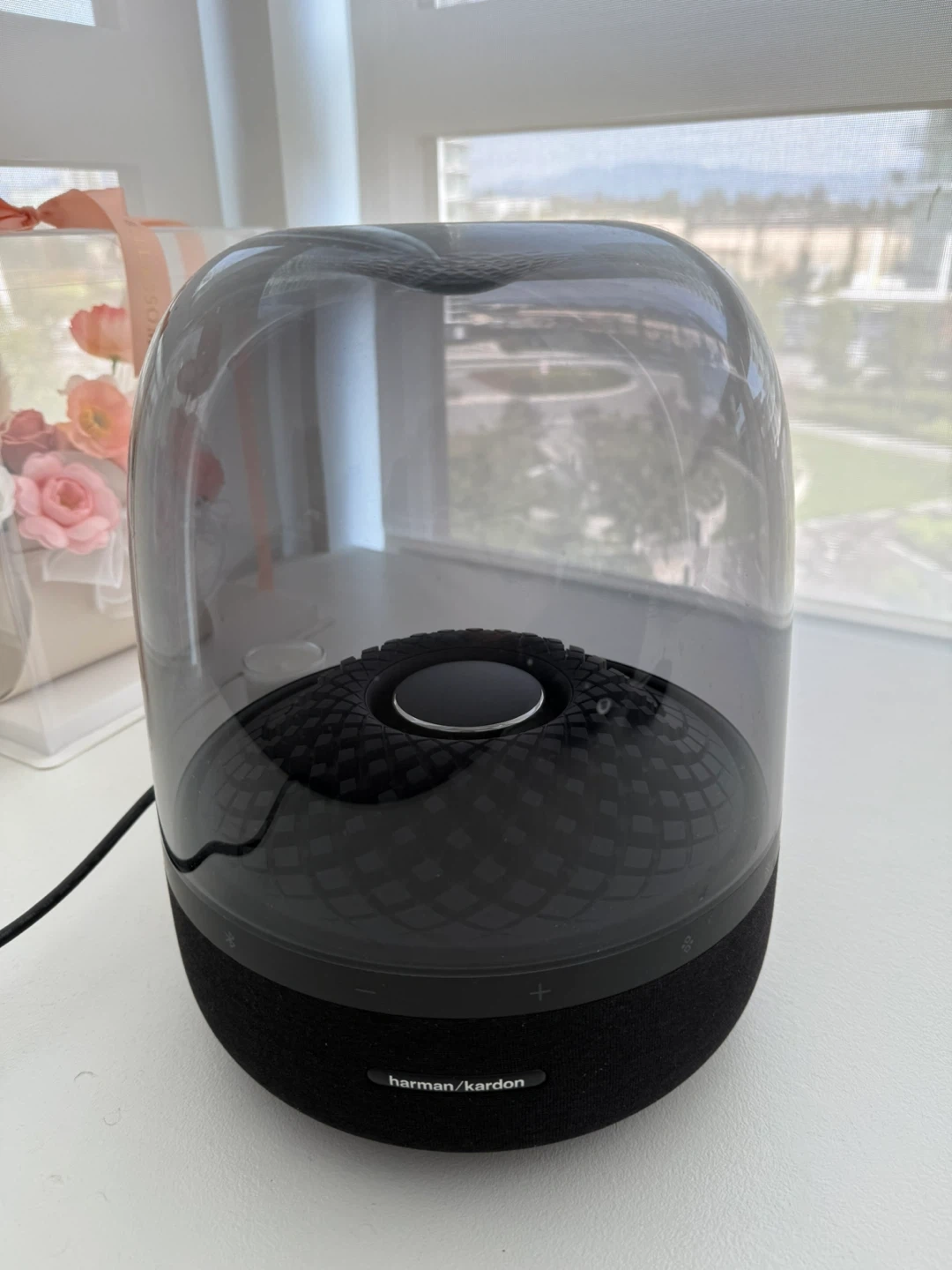 Selling a Harman Kardon Aura Studio 4 Bluetooth Home Speaker in black! This speaker features a transparent dome design with diamond-effect lighting. It comes with the power cable and original documents. Enjoy the amazing sound quality and stylish look!