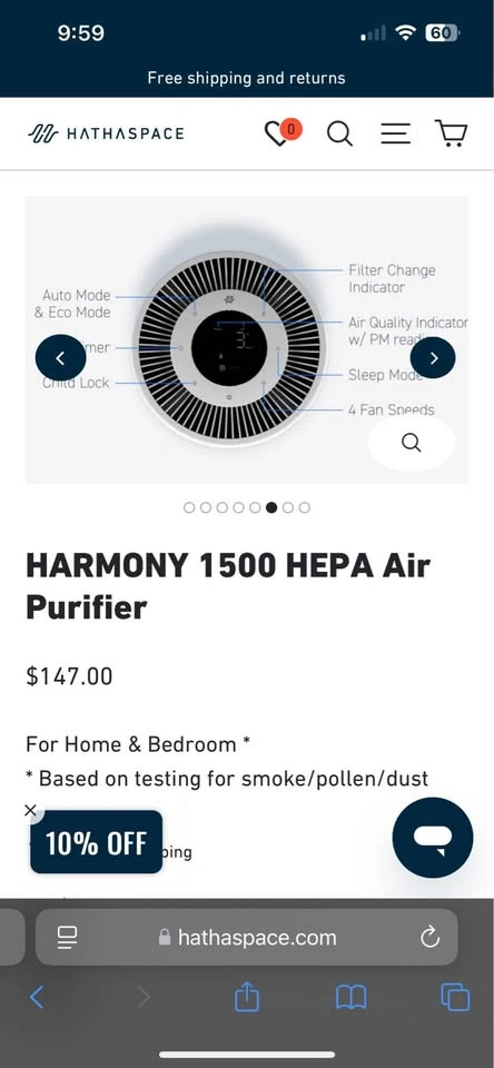 72Introducing HARMONY 1500 by HATHASPACE. Its sleek design is perfect for your home while blending into your décor. A 4-stage composite filter features a Polypropylene Pre-filter, non-woven Pre-filter, Activated Carbon Filter, and H13 True HEPA. Together, the filtration system targets pollen, dust, pet dander, VOC’s, smoke, and odors. Our smart air quality sensor detects pollutants in your air, adjusting the fan speed in real-time and can enter an energy-saving ECO mode. Perfect for bedrooms, large rooms, and home office up to 1500 square feet, filtering 100% of the air every hour.
