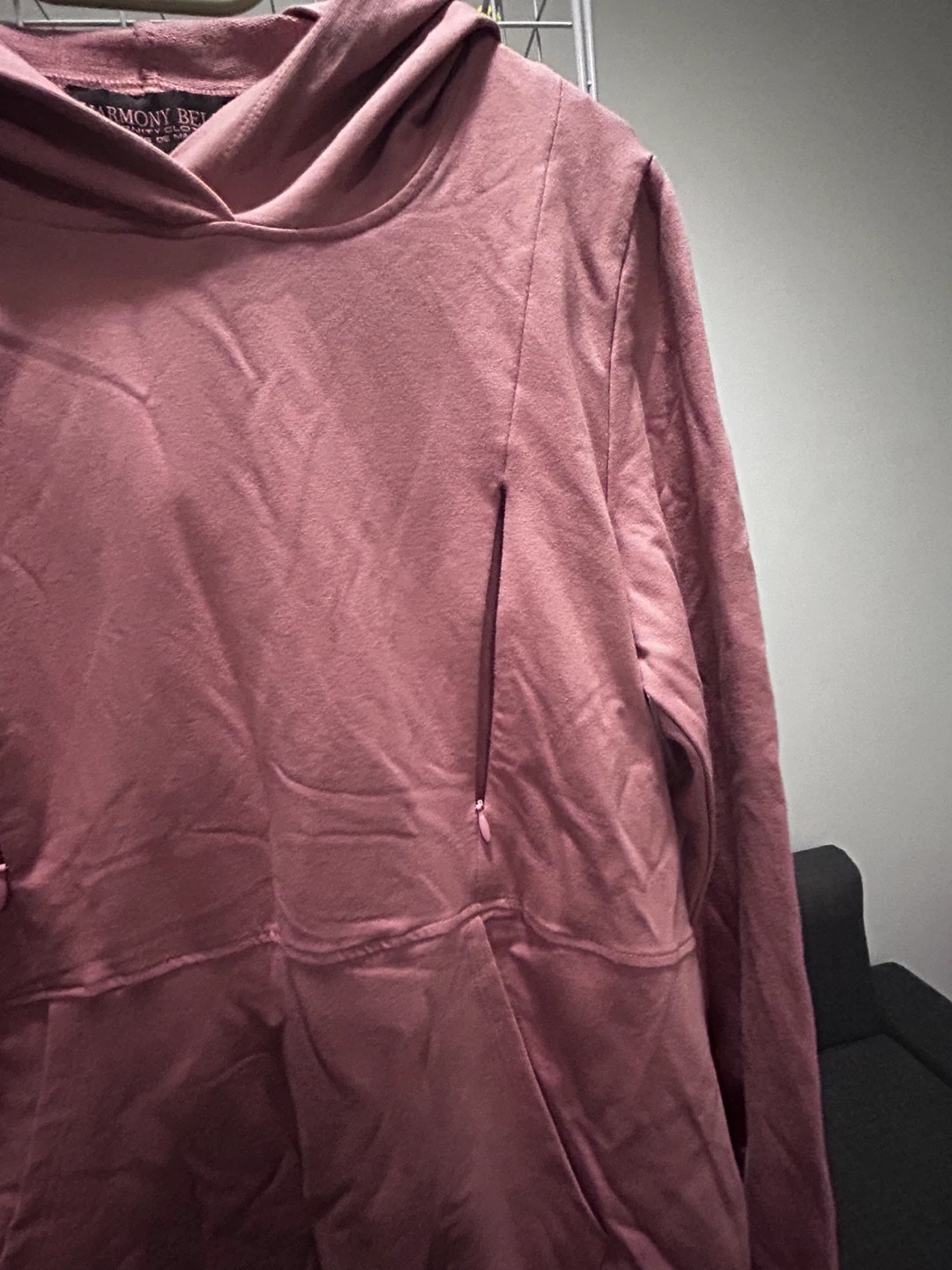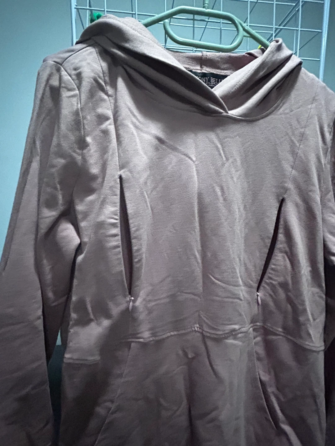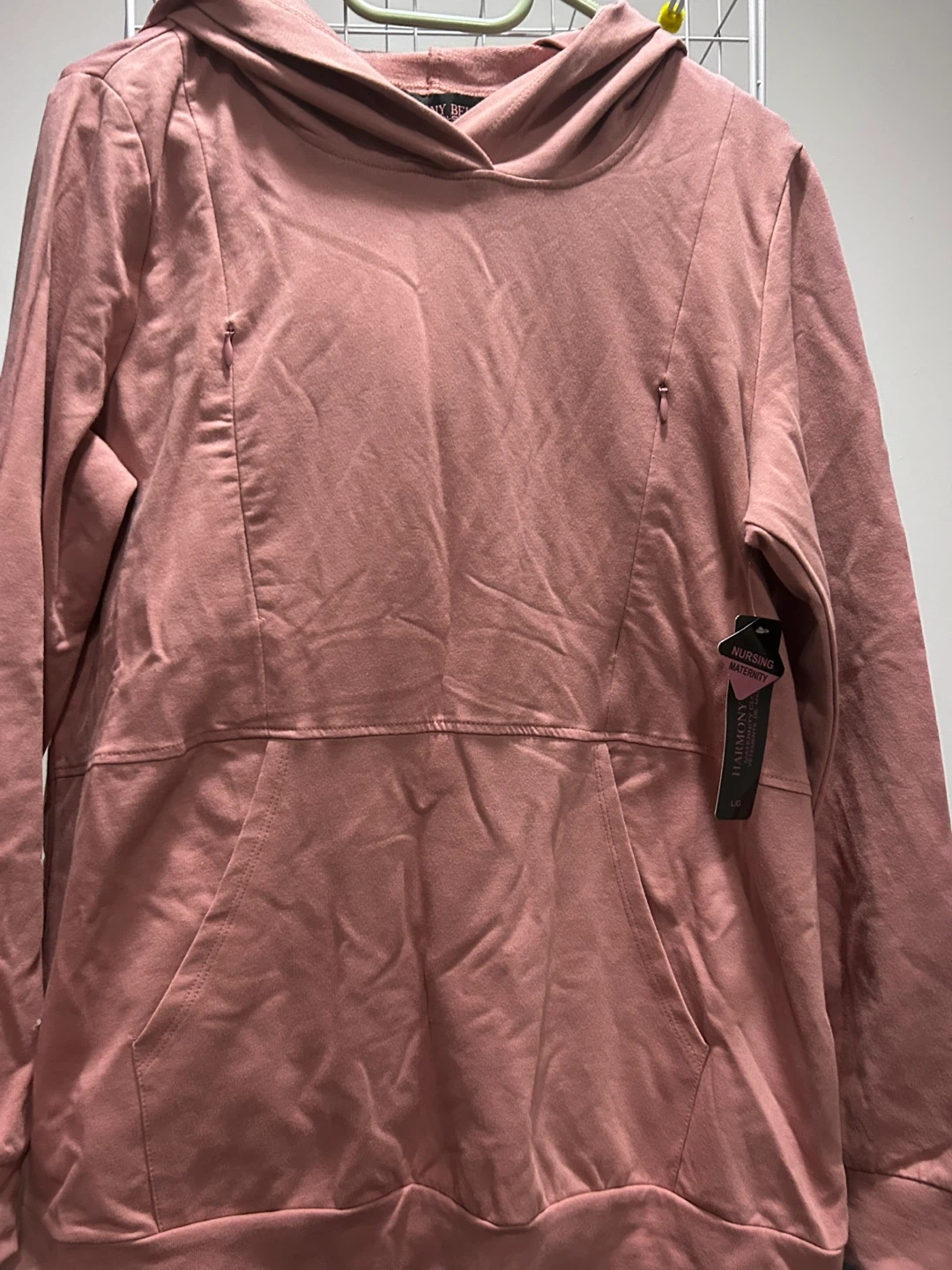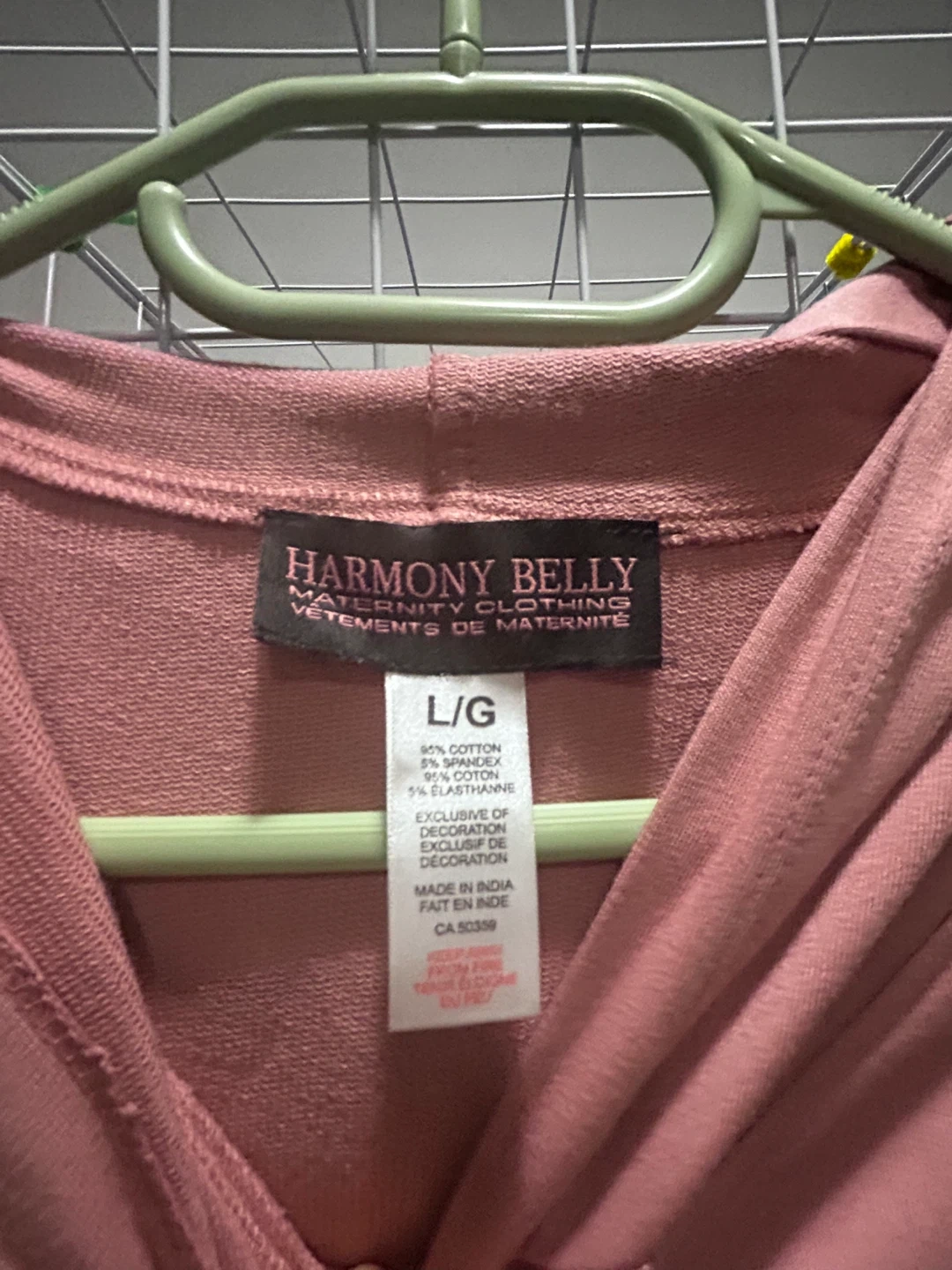 10Cozy Harmony Belly maternity hoodie in size L/G. It's made of 95% cotton and 5% elastane, so it's super comfy and stretchy. Perfect for nursing or just lounging around!