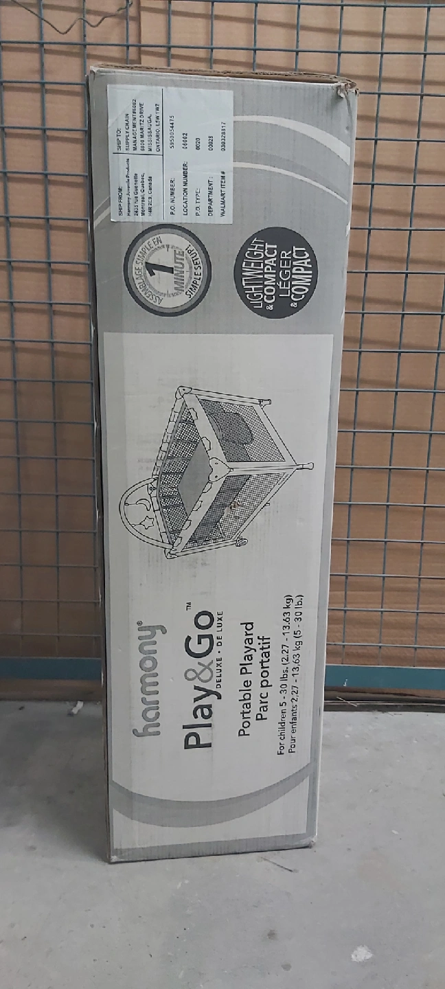 Selling a Harmony Play&Go Deluxe portable playard! It's in excellent condition and comes with the carry case. Key features include: - Toy bar with 2 plush toys to soothe and stimulate your child - 2 lockable wheels for easy movement between rooms