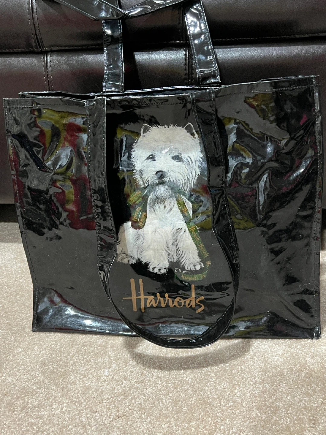 20Selling a Harrods wide tote bag with zipper! It keeps your stuff from falling out. It also has a zipper pocket inside for valuables. Who can resist the adorable white Westie? Perfect for shopping or everyday use!