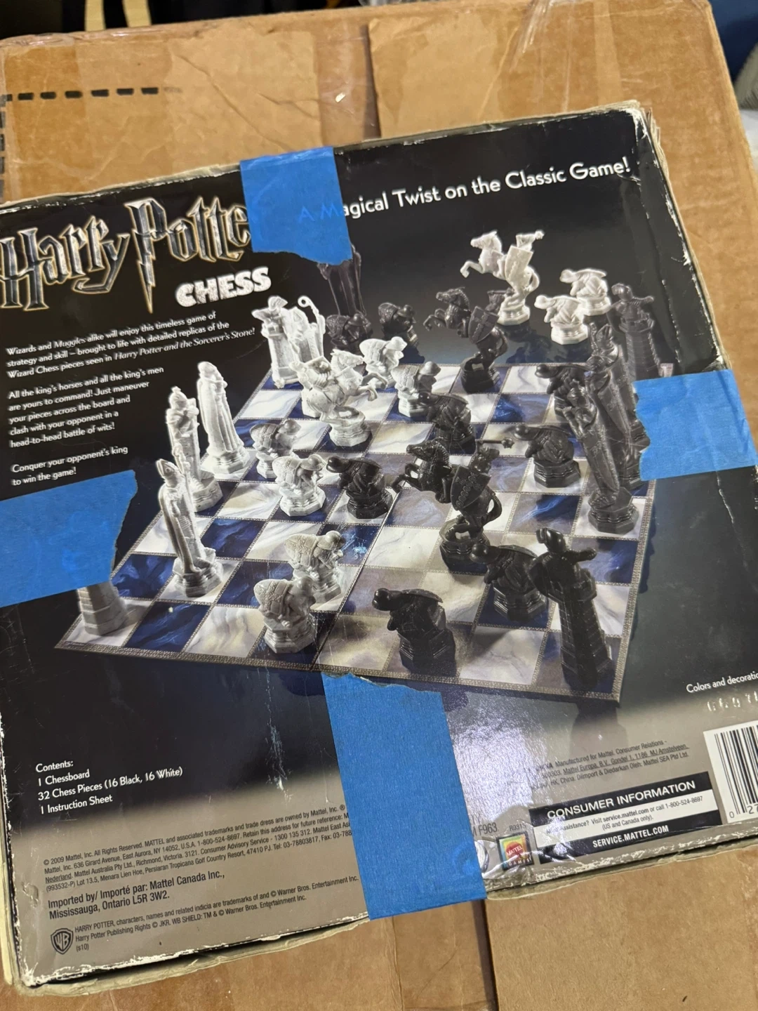 Selling a Harry Potter Chess set! It's a magical twist on the classic game. The set includes a chessboard, 32 chess pieces (16 black, 16 white), and an instruction sheet. Perfect for Harry Potter fans and chess enthusiasts alike Meet at Downtown Davie Shoppers Moving. Must go. No holds Cash only