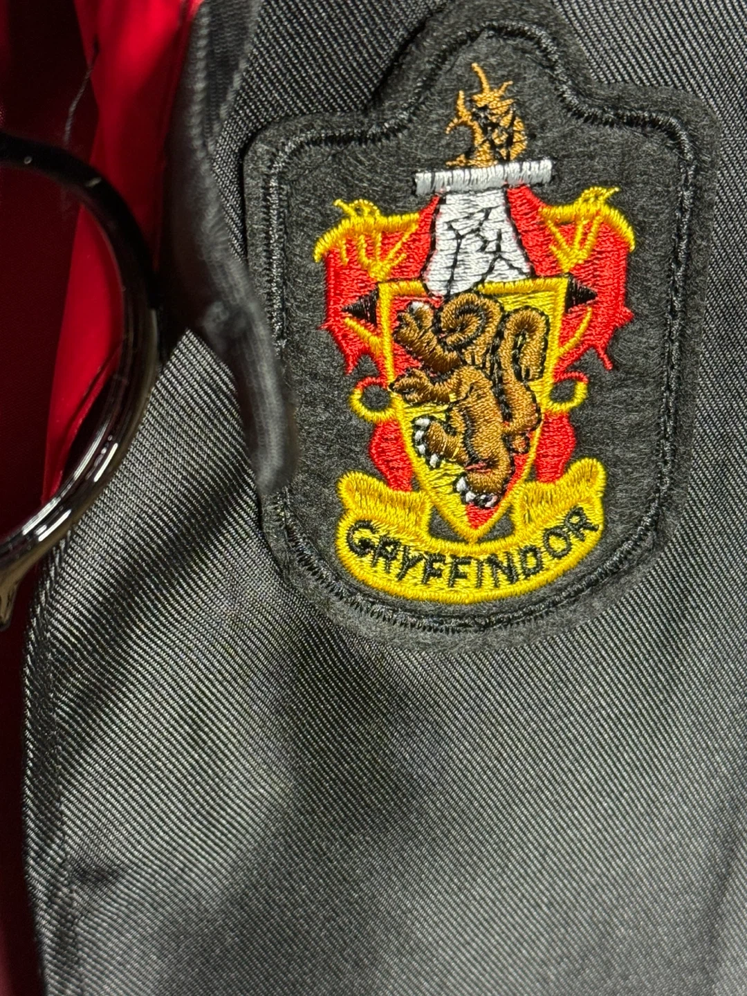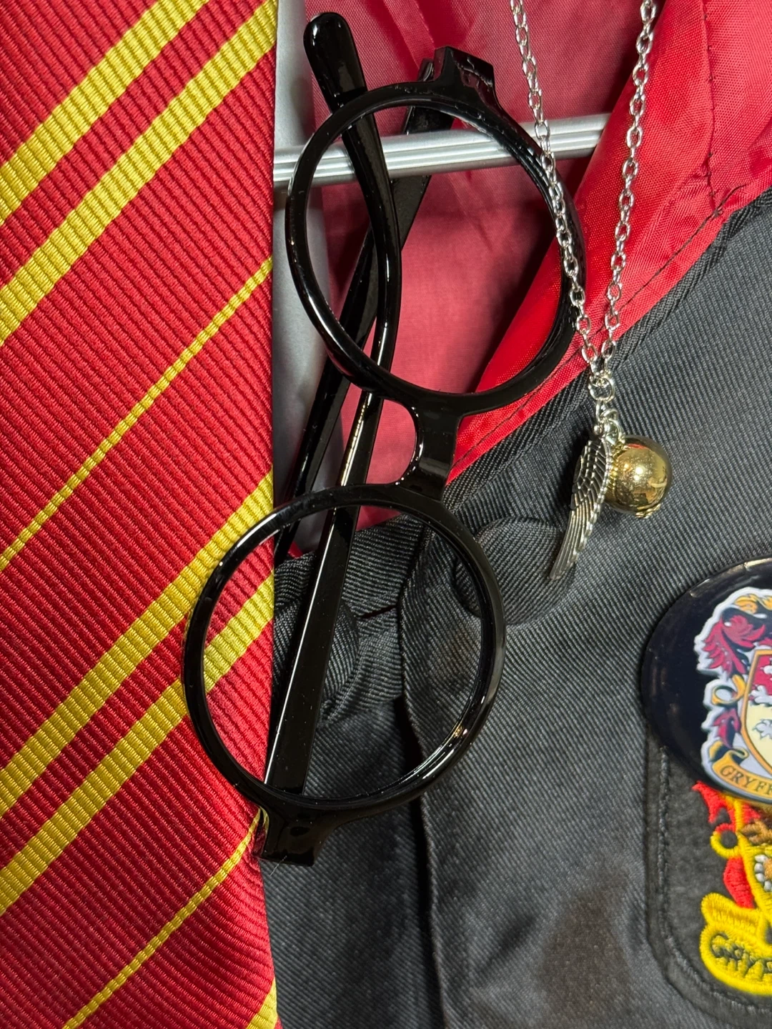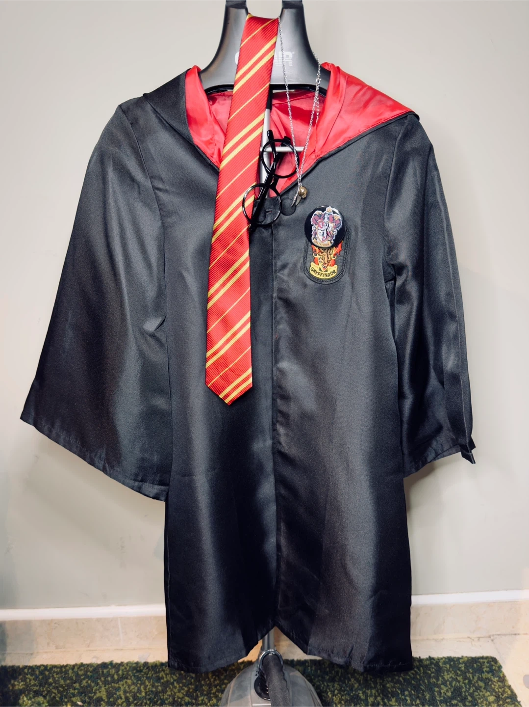 Selling a complete Harry Potter Gryffindor costume! It includes the robe, tie, glasses, and a necklace with a golden snitch charm. Great for Halloween