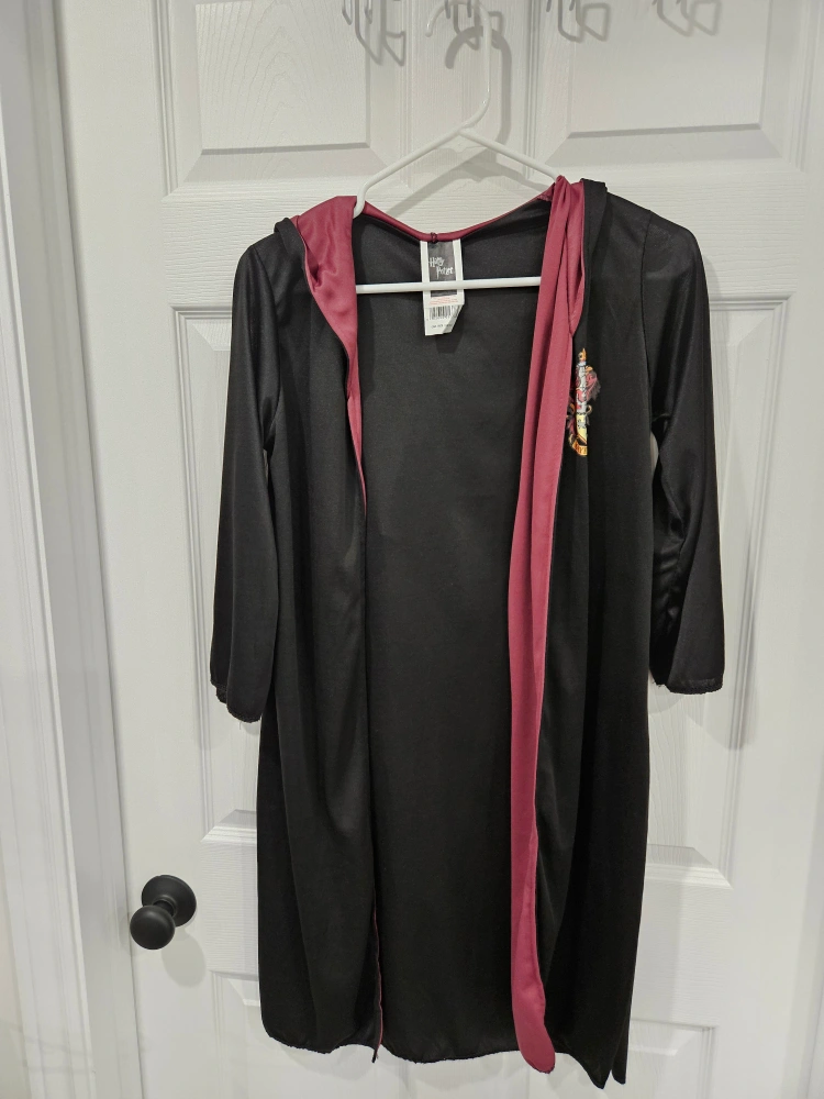 Selling a Harry Potter Gryffindor robe! The robe is black with the Gryffindor crest on the chest and red lining inside the hood. Perfect for any Harry Potter fan!
