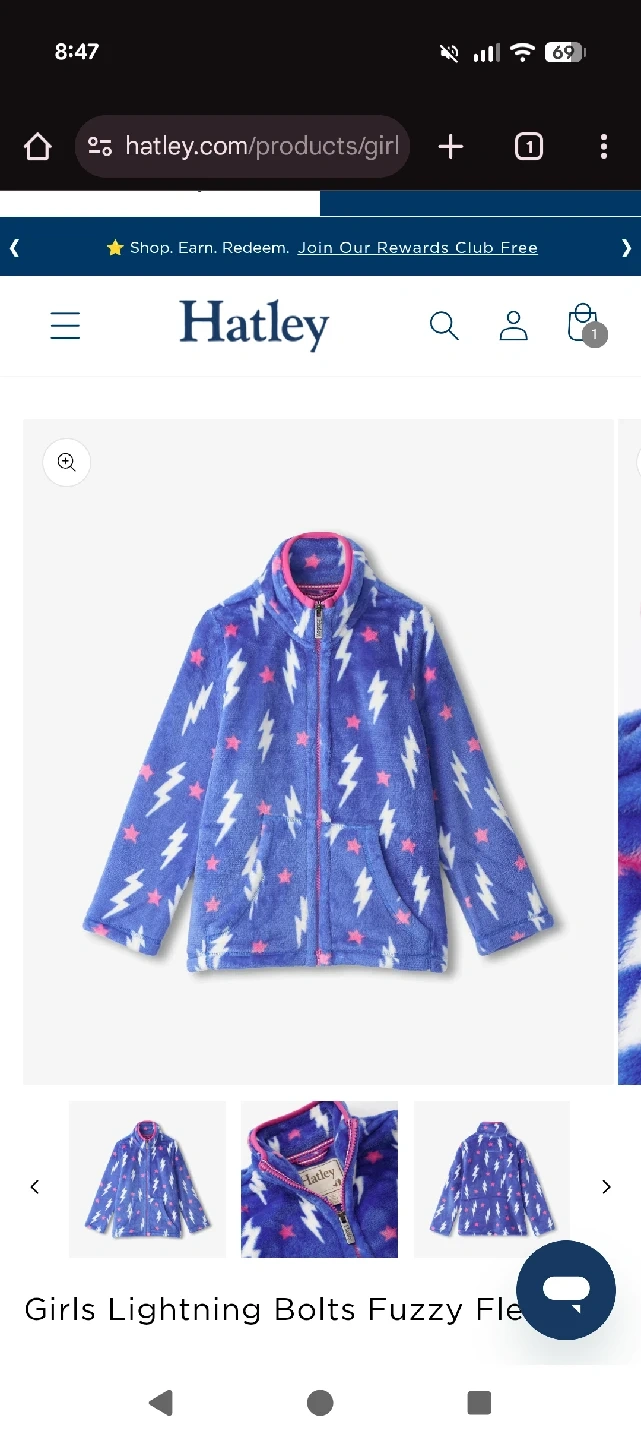 71Brand new with tag fleece jacket by Hatley in kids size 6 (116cm). 100% polyester with lighting bolt design. Pick up at Dufferin and Rutherford.
