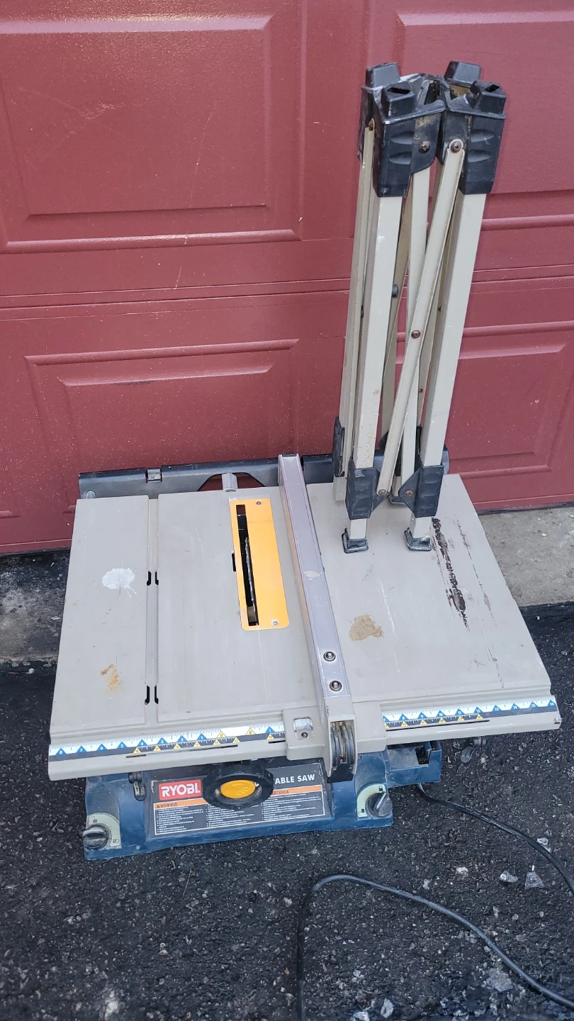 This Ryobi 10-inch table saw is a reliable tool for your workshop. It includes a folding stand for easy setup and storage. In excellent working condition