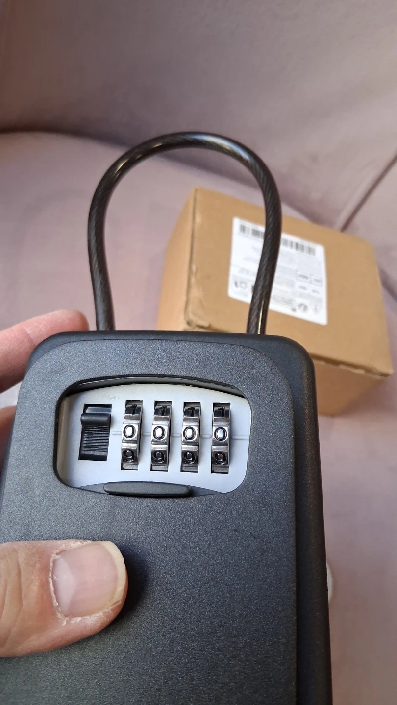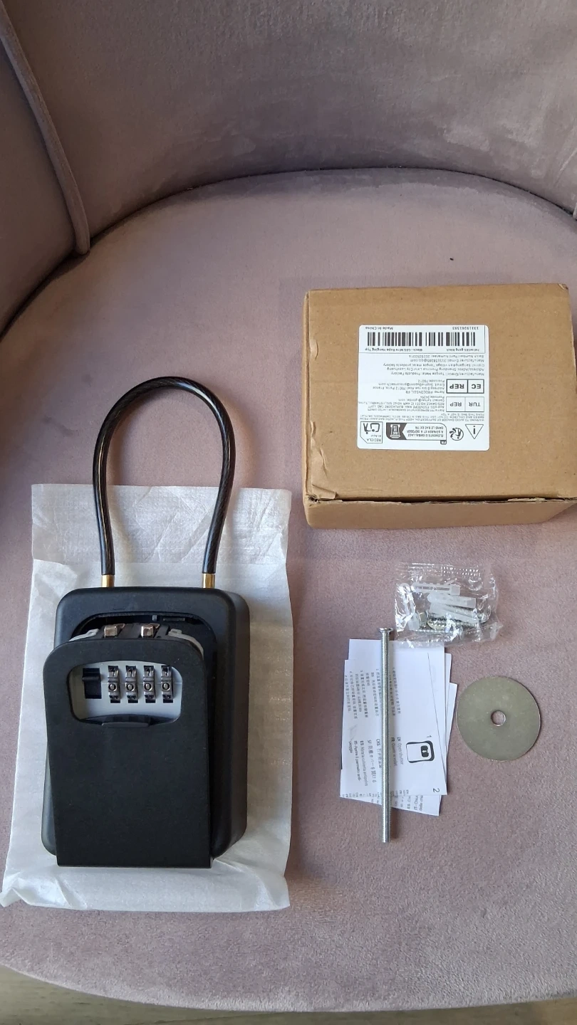 Hookable or Wall Mount with 4-Digit Combination Lockbox for House Keys. You can set up your 4 digits of your own.