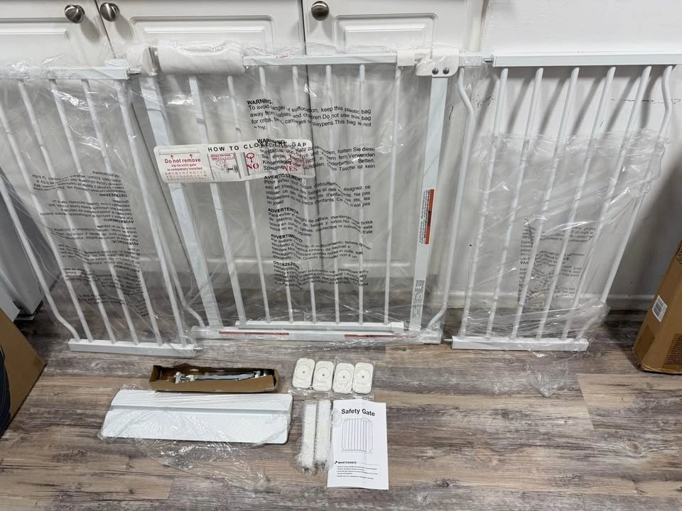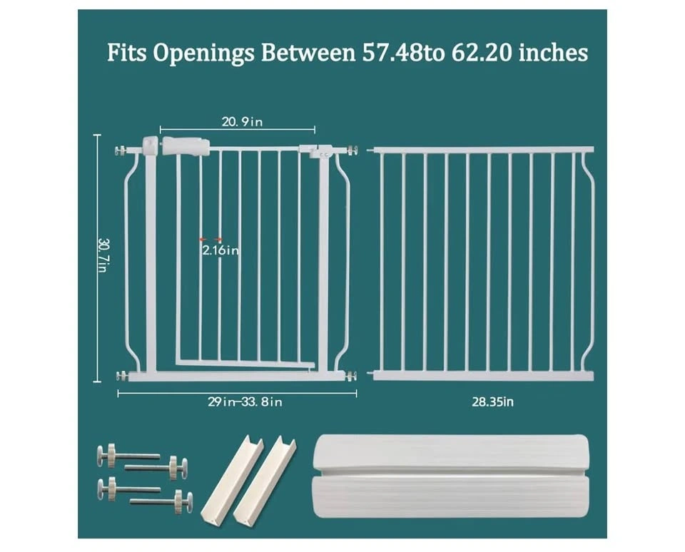 26ALLAIBB 58- 62 Inch hBaby Gate Extra Wide Pressure Mount 57.48-62.20in Walk Through Auto Close White New Open Box Pick up only