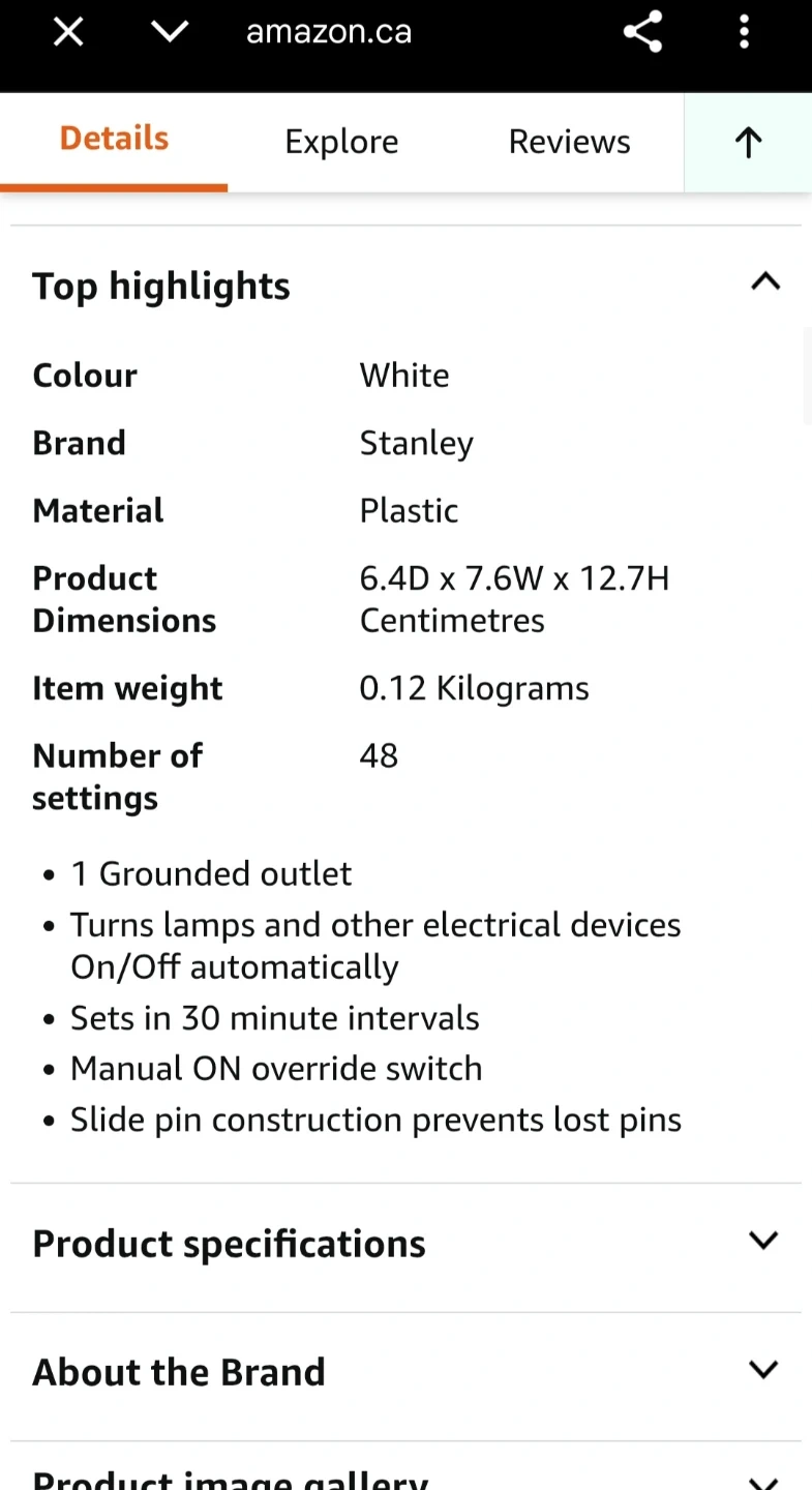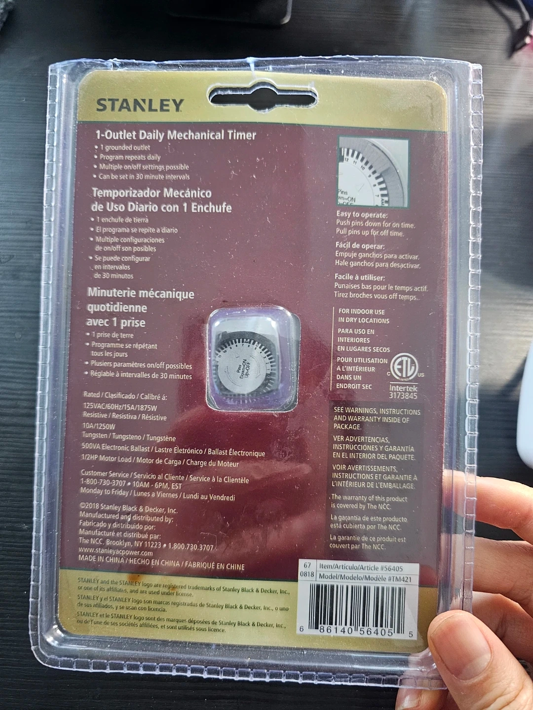 This Stanley TIMEIT Mini mechanical timer features a 1-outlet design.