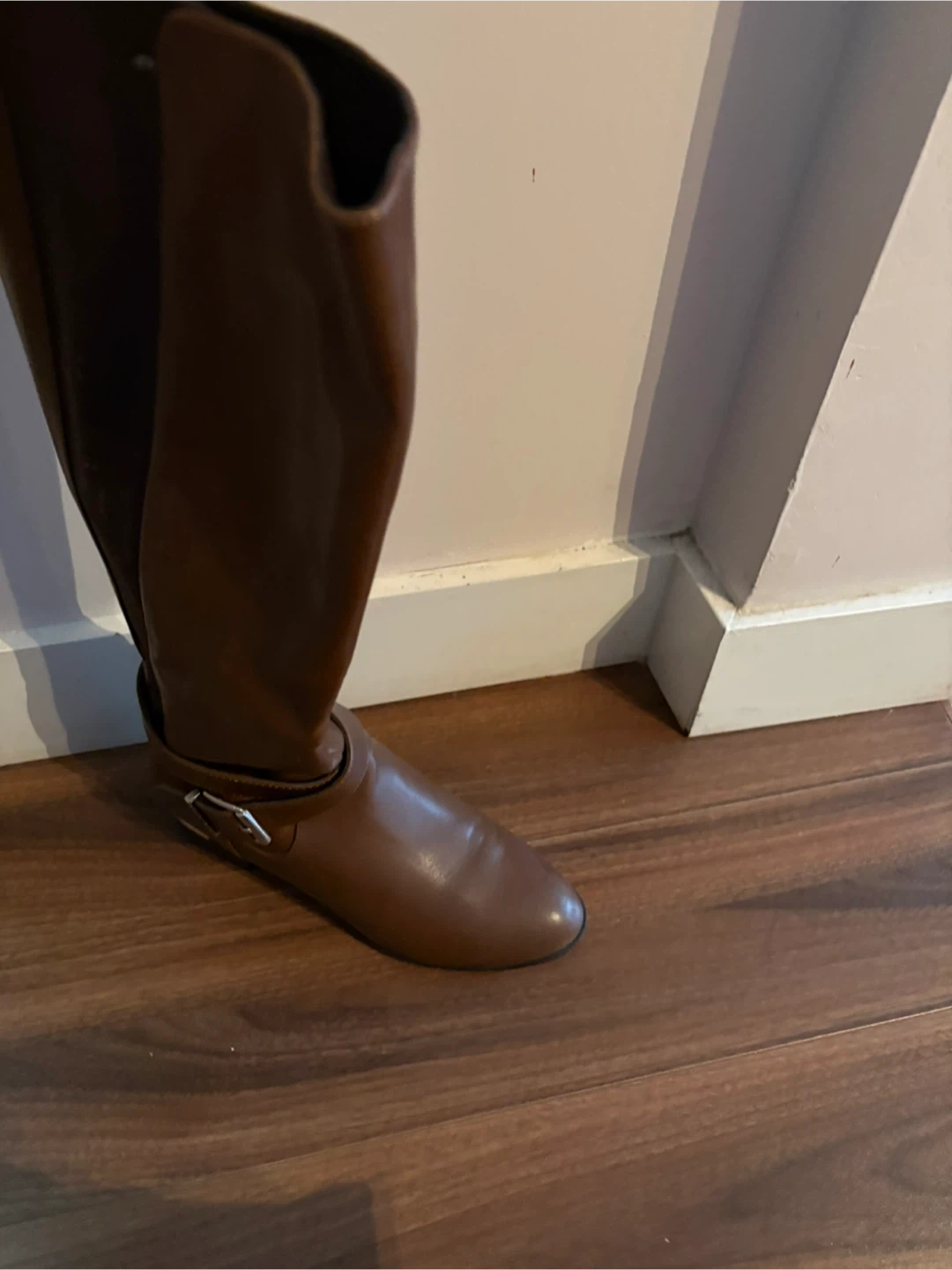 These are a pair of brown knee-high boots! They are in good condition and would be a great addition to your wardrobe