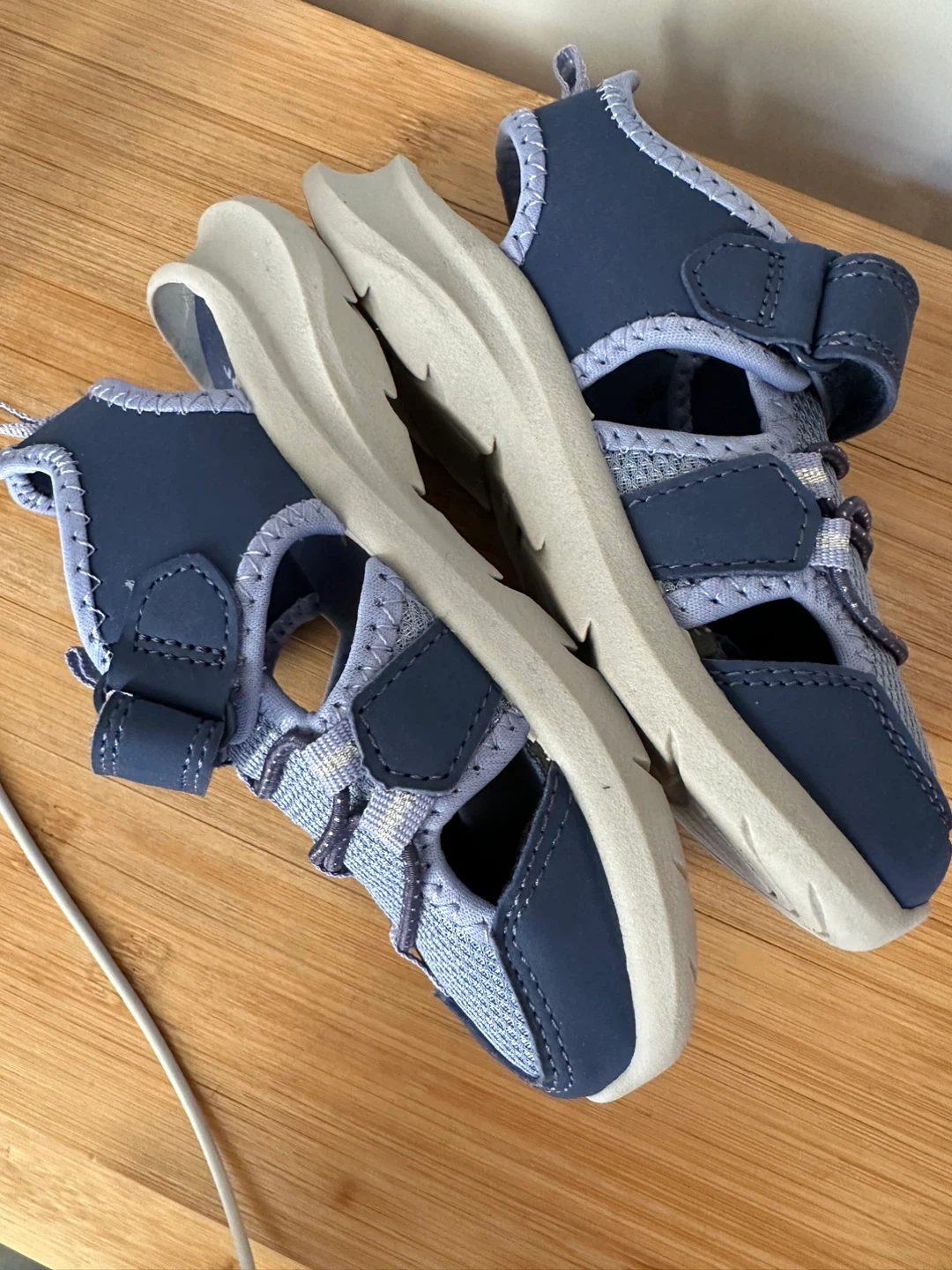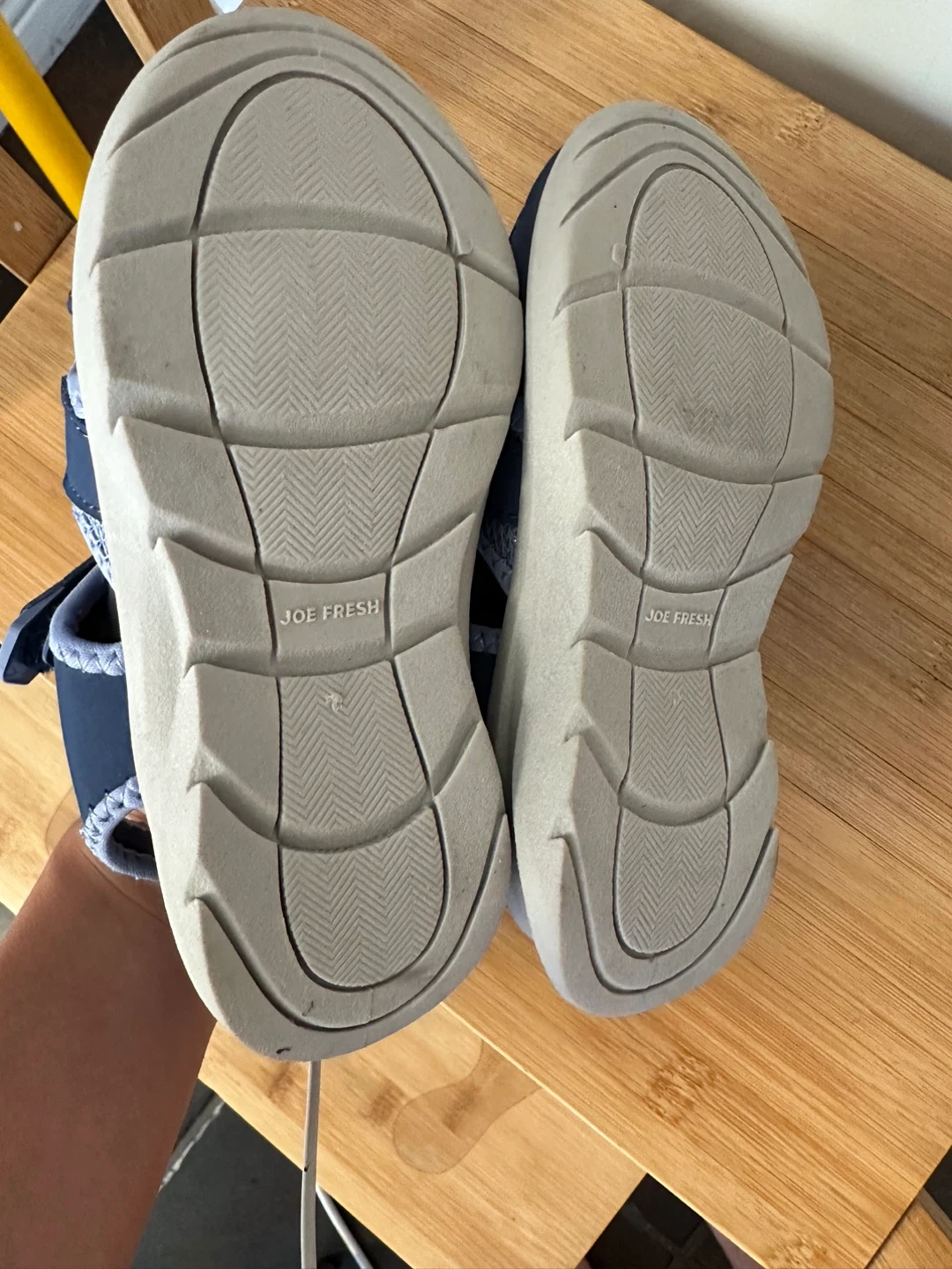 These Joe Fresh sandals are blue with hook-and-loop closures for an easy fit. They're a size 9 and designed for active kids. Great for summer adventures!