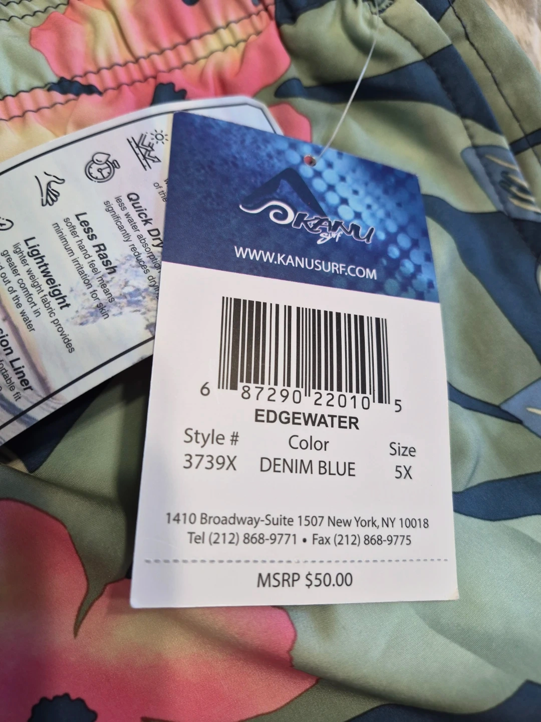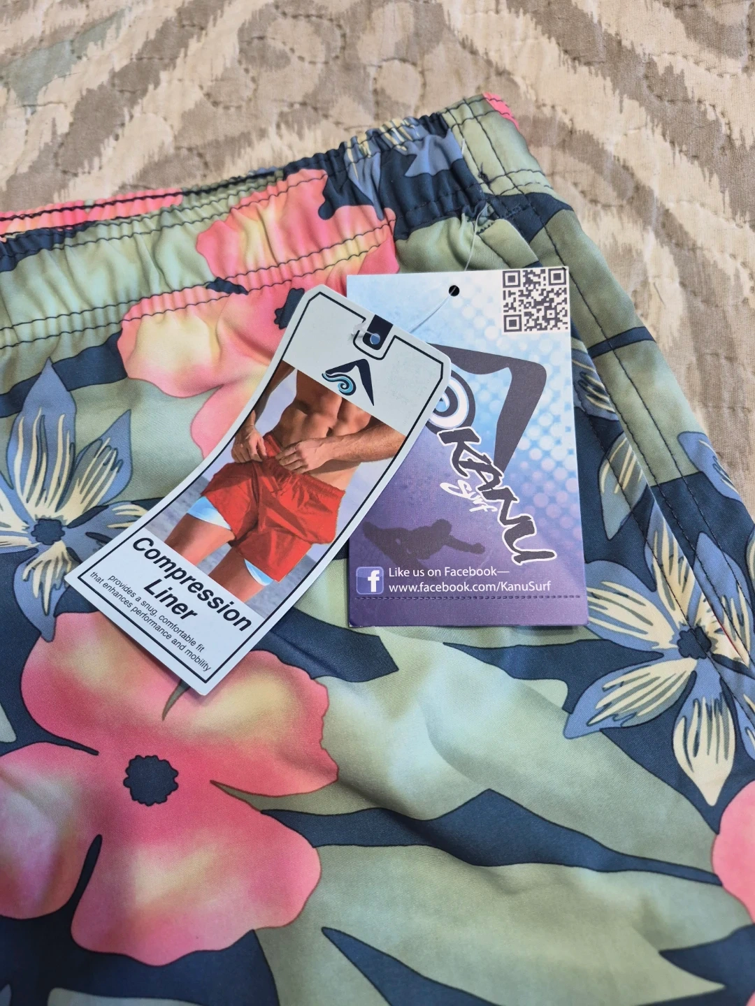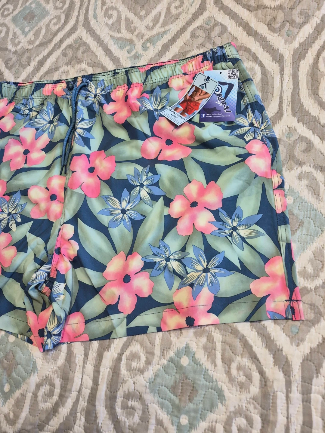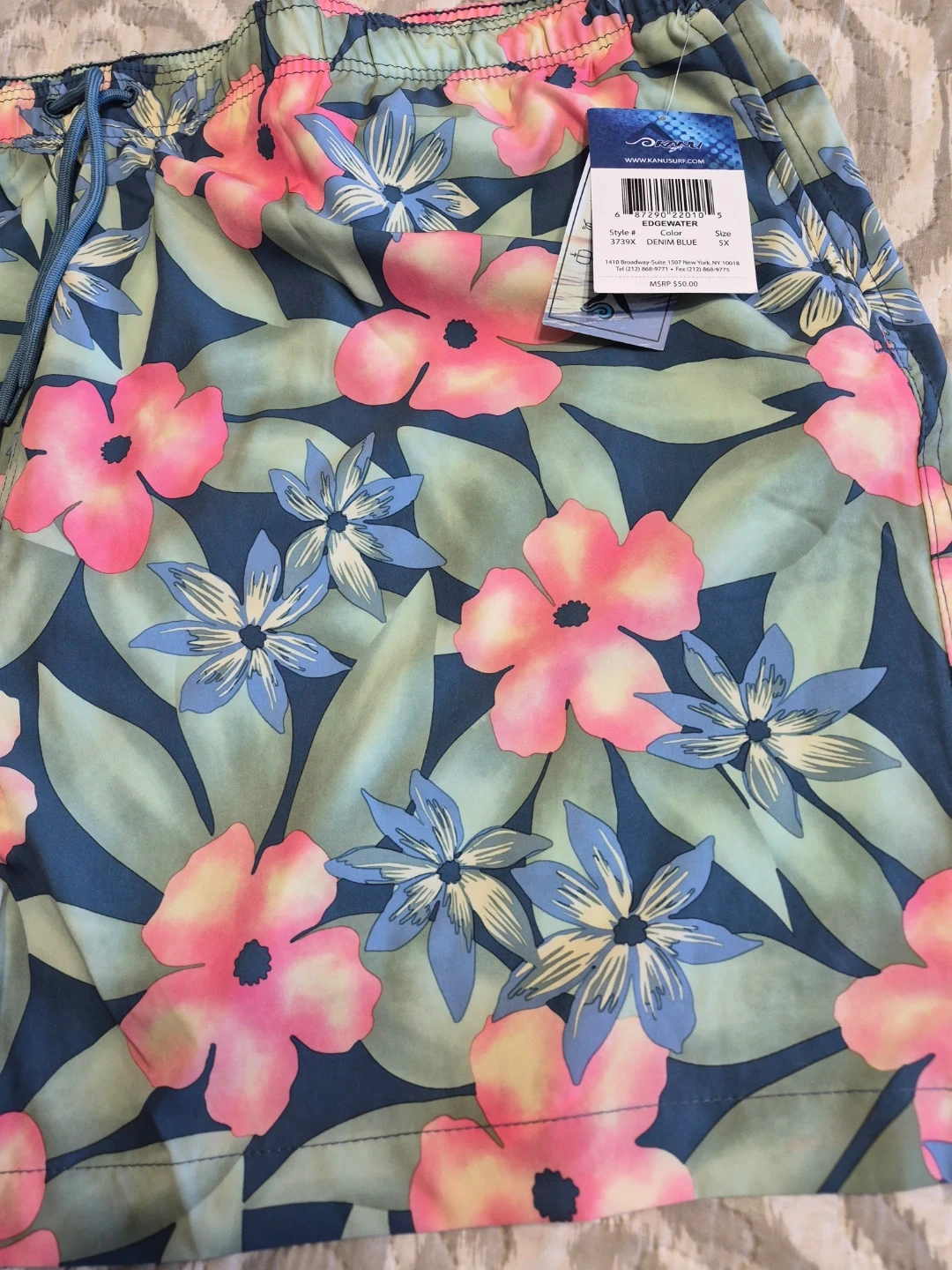 Kanu Surf Swim Trunks Mens 5X Big Tall Green Pink Floral Board Shorts Brand New with Tags please see all pictures