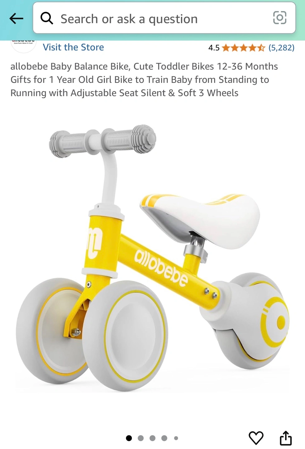 Cute toddler balance bike. Suitable for 12-36 months. Trains baby to stand and run. Features adjustable seat and silent, soft wheels.