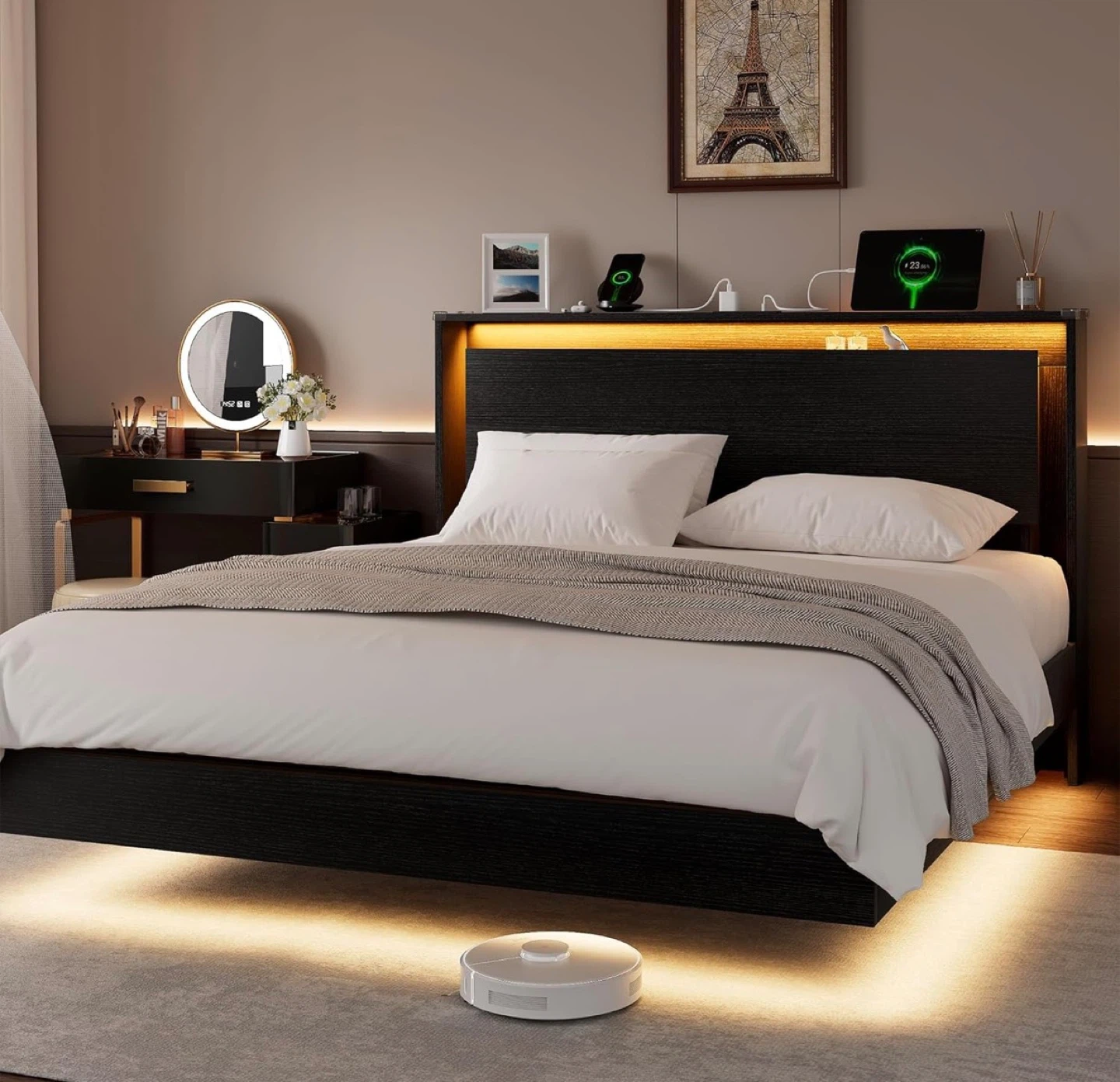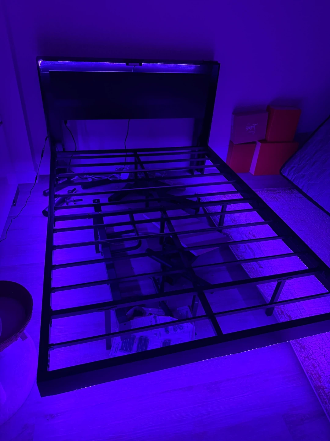 Modern LED Platform Bed Frame w/ USB Charging – Like New