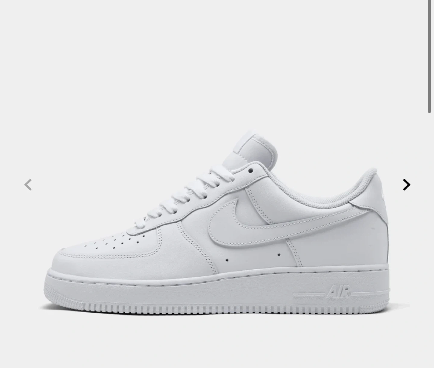 Classic white Nike Air Force 1 sneakers. These iconic kicks are made of durable leather. They're a versatile choice for everyday wear. Perfect for adding a sporty vibe to any outfit!