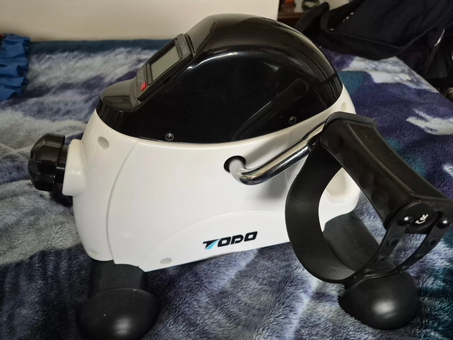 This TODO mini exercise bike is great for a light workout. It's compact and portable for use anywhere. The digital display tracks time, distance, and calories burned.