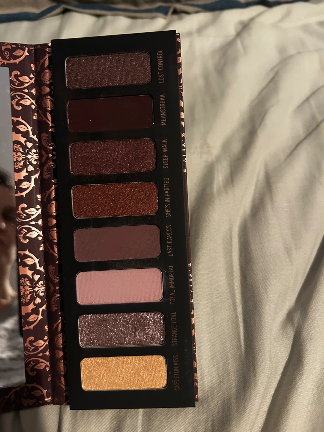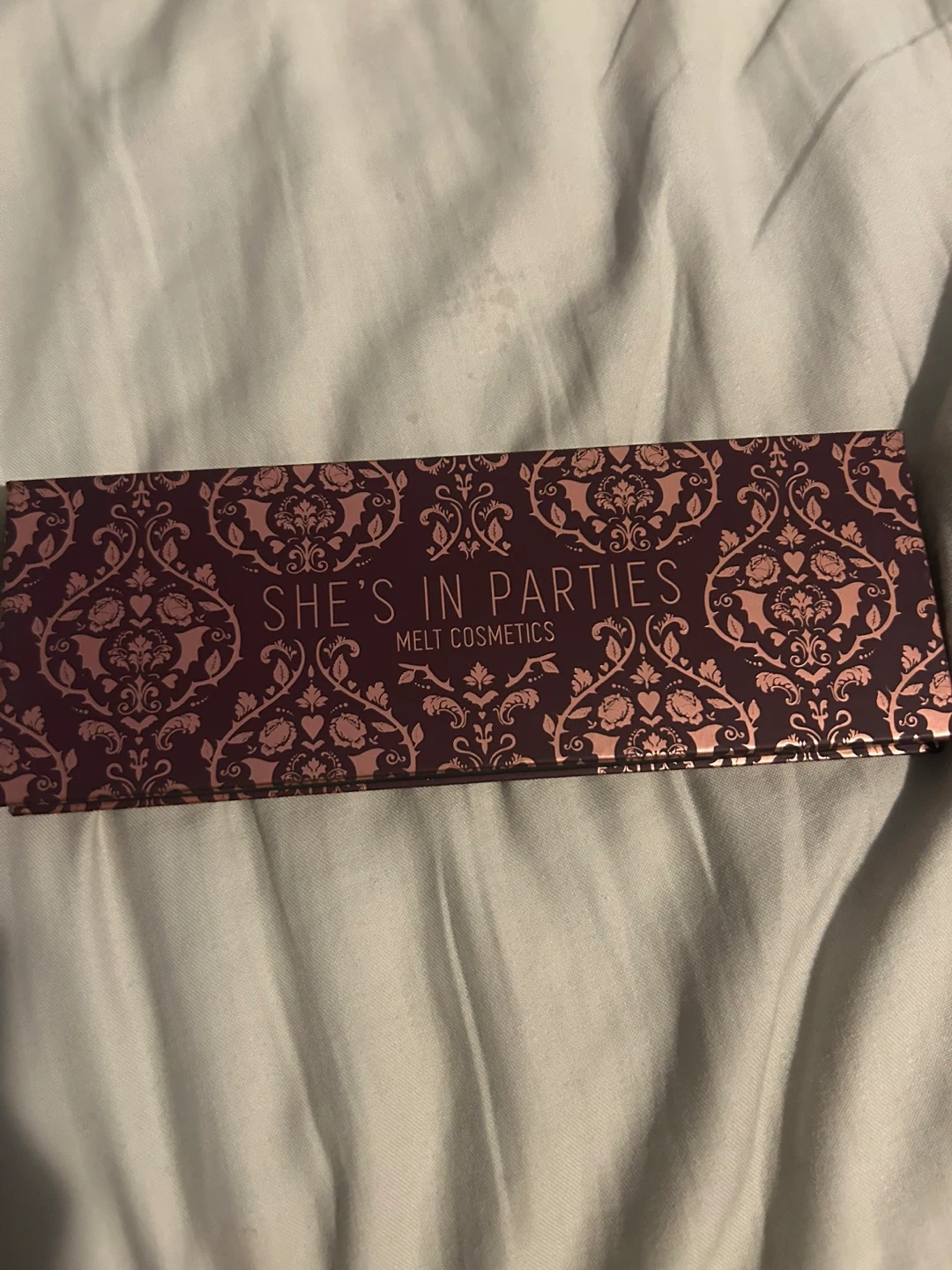 This is the Melt Cosmetics She's In Parties eyeshadow palette. It features 8 rich, pigmented shades. The palette is in a compact case with a mirror inside.