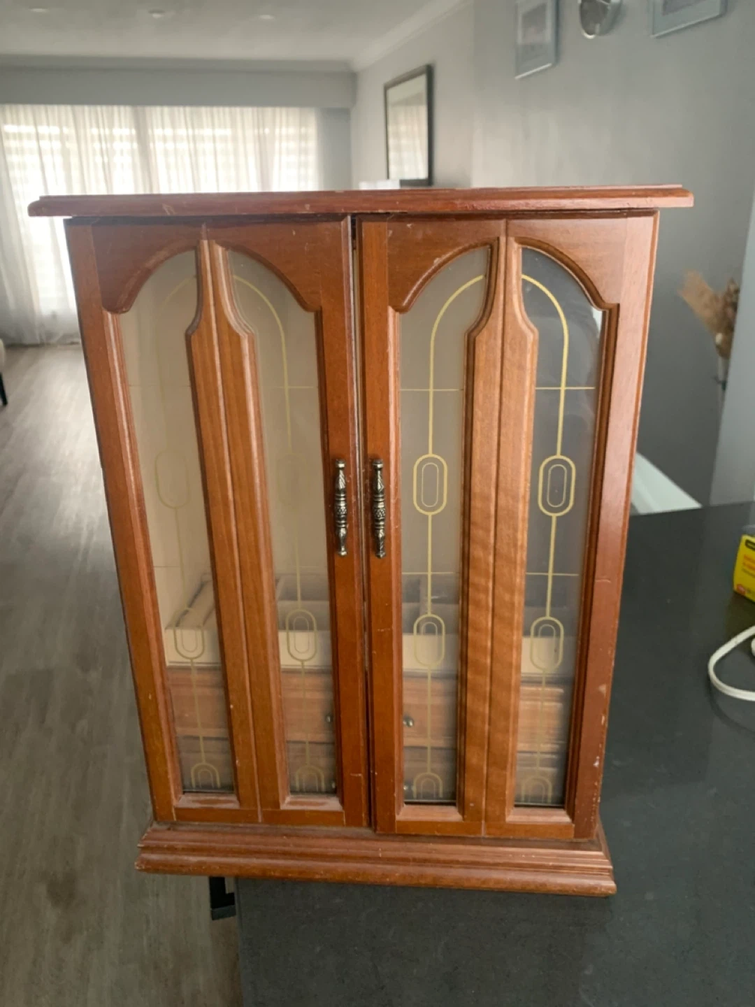 Wooden Jewelry Box with Glass Doors