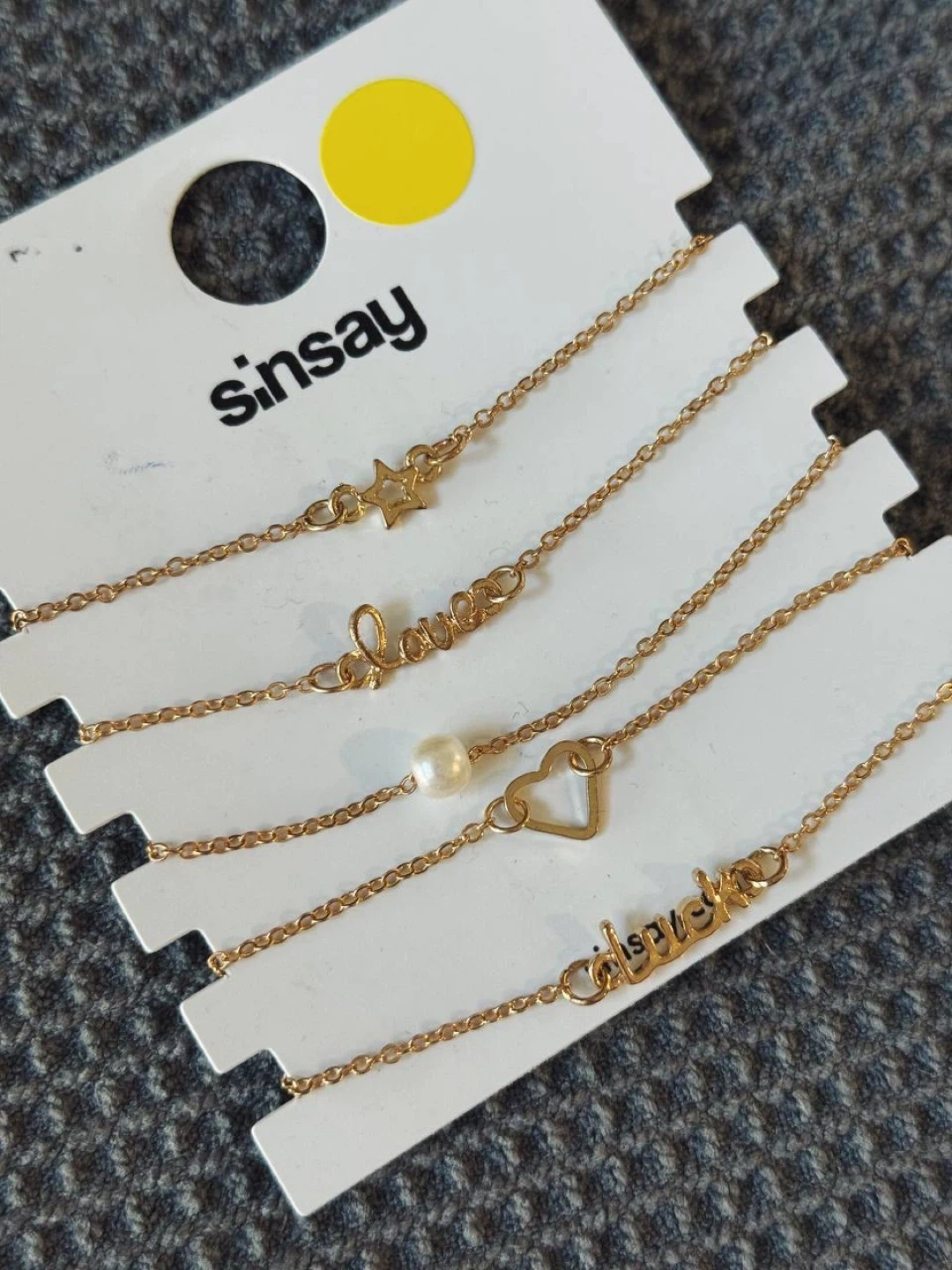 Includes 5 stylish delicate chain bracelets with different designs: star, “love” charm, pearl, heart, and “luck” charm 💛
