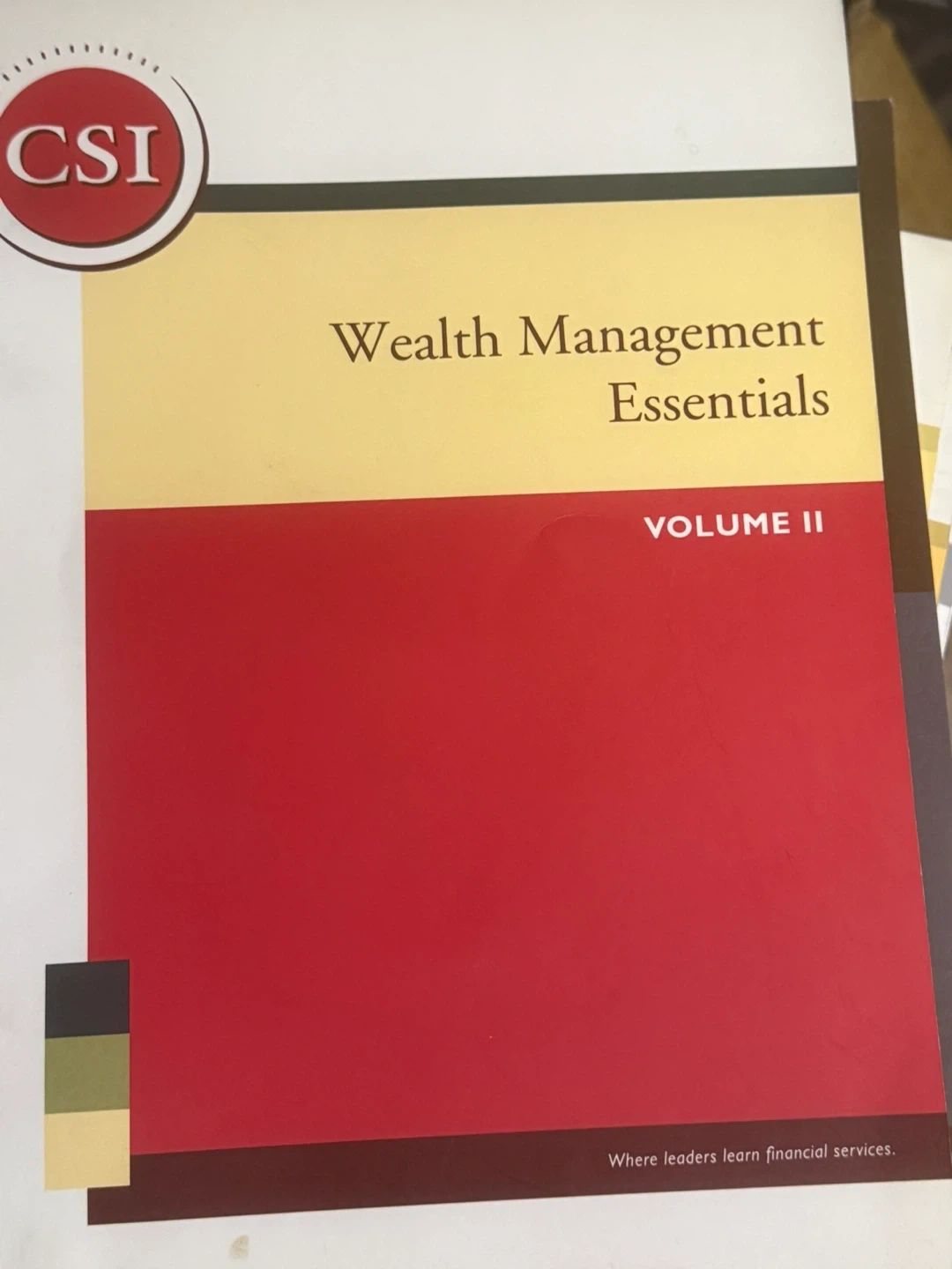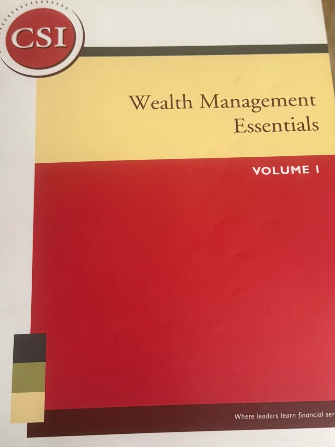 Set of CFA Program Curriculum books from Level 1. Includes volumes on Ethical and Professional Standards and Quantitative Methods, Equity and Fixed Income, and Corporate Finance and Portfolio Management. Also includes 'Wealth Management Essentials Volume I' from CSI. Perfect for finance professionals.