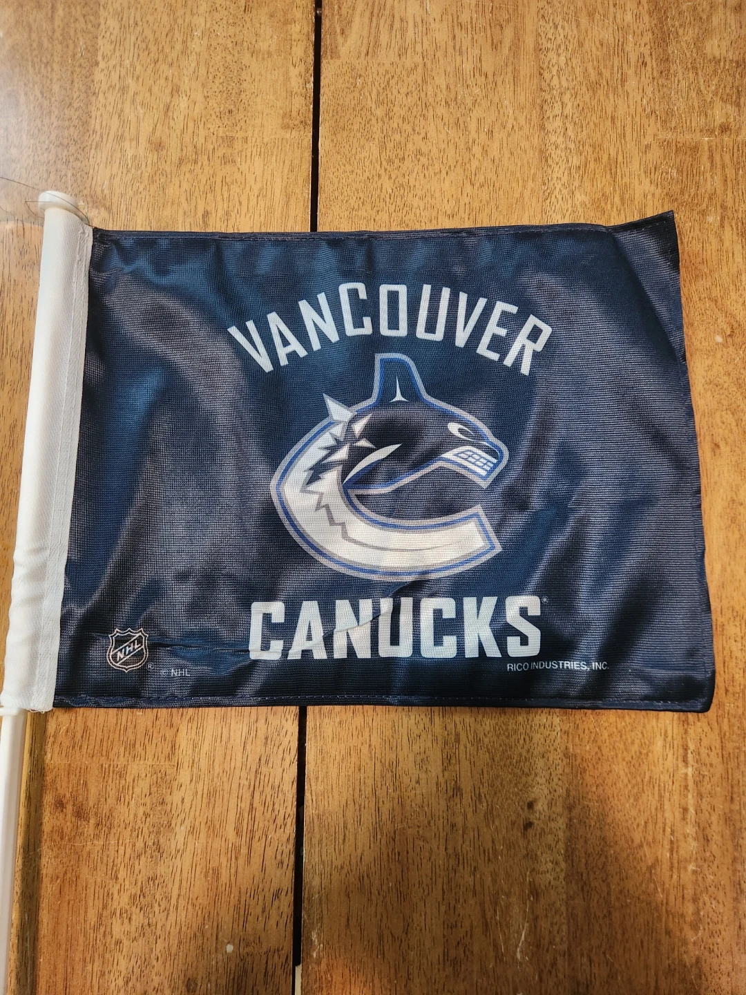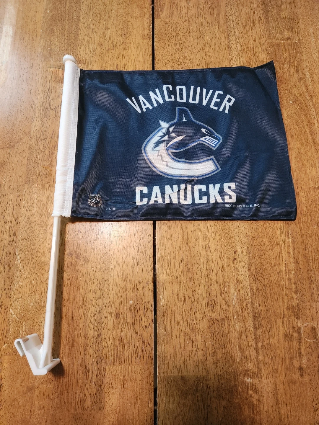 Show your team spirit with this Vancouver Canucks car flag. It's made by Rico Industries, Inc. and is officially licensed by the NHL. Perfect for any Canucks fan heading to a game or just cruising around town!