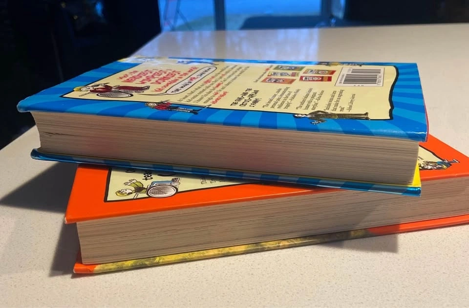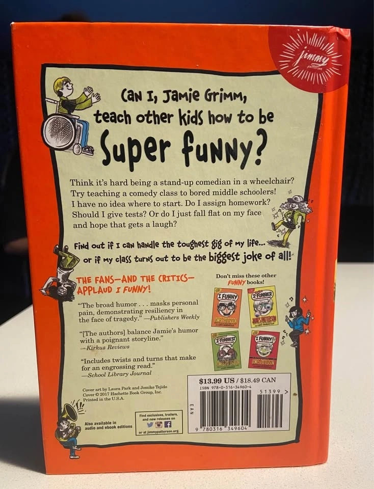 EUC hardcover books by James Patterson & Chris Grabenstein: School of Laughs (Book 5, 2017) and The Nerdiest, Wimpiest, Dorkiest I Funny Ever (Book 6, 2018). Retail $18.49 each, selling for $4 each. From a smoke-free home. Pick up in north end St. Catharines near Linwell/Vine.