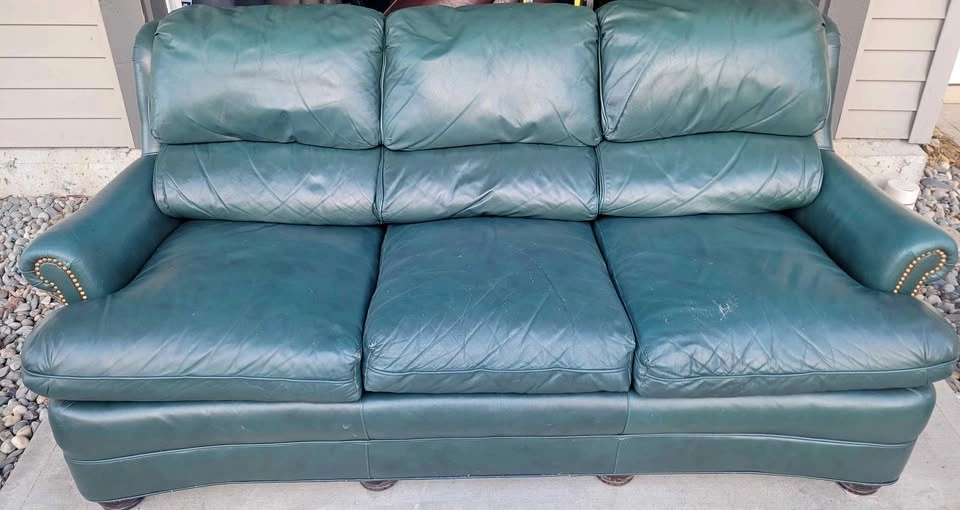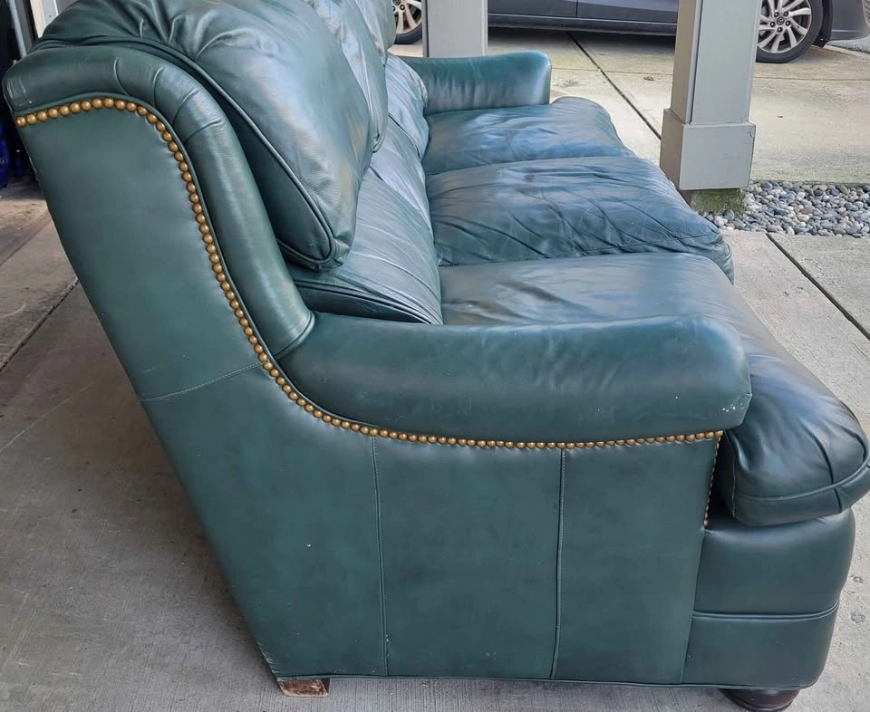 Selling this high end emerald green genuine leather Hancock & Moore 3 seater sofa in great used condition.