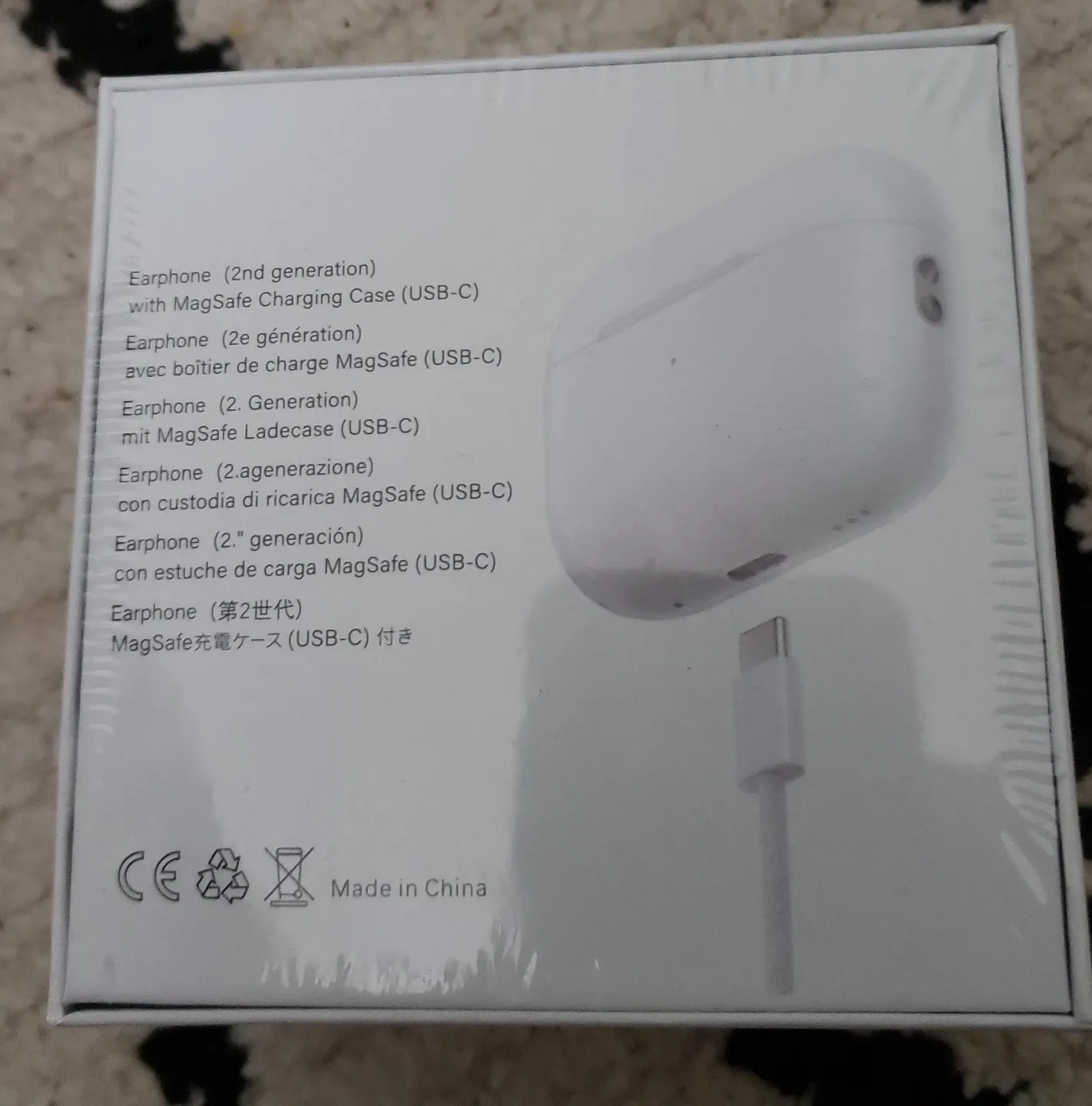 These are 2nd generation earphones with a MagSafe charging case. The case connects via USB-C. They're made in China.