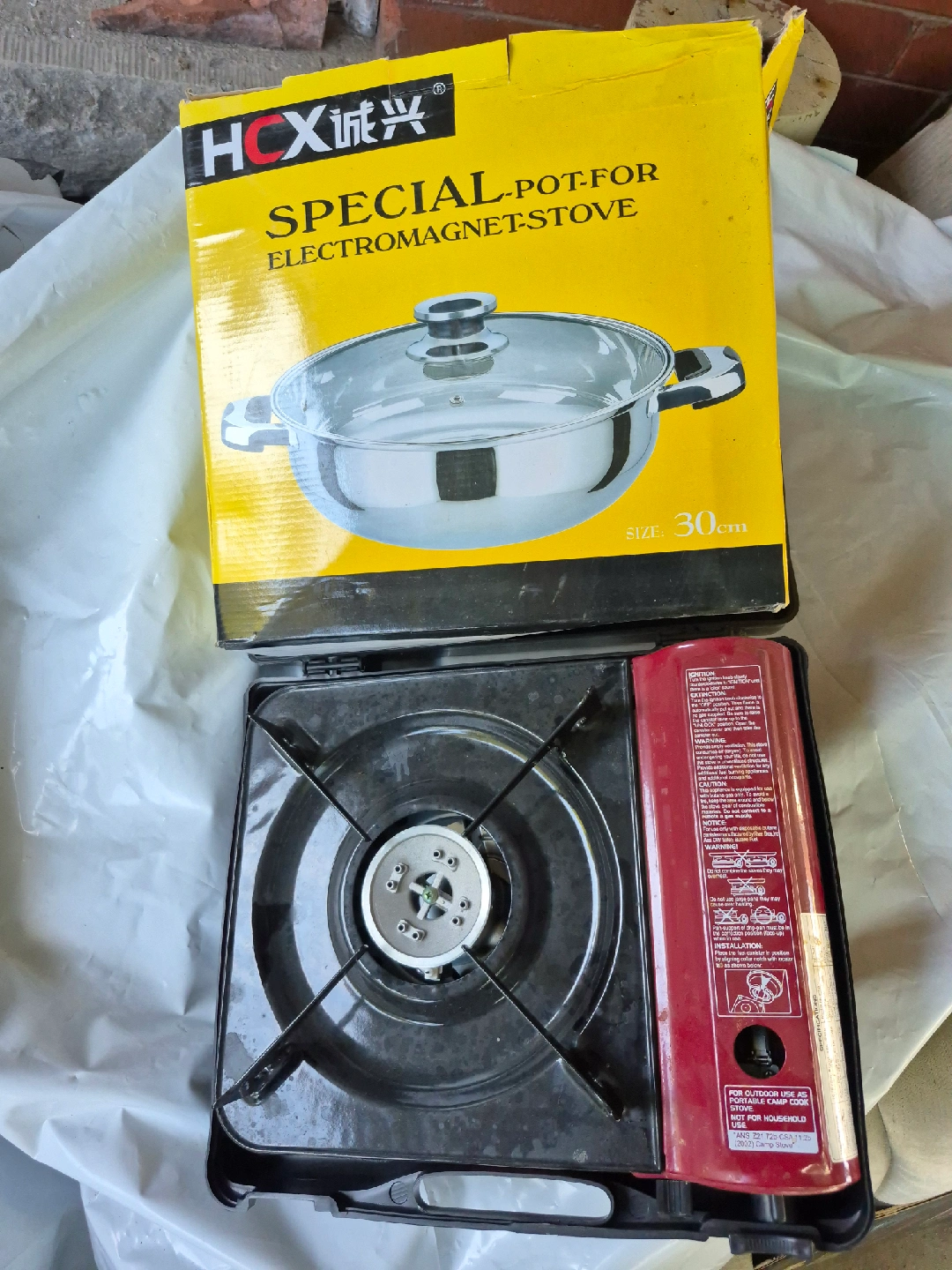 15Selling a pot from HCX, size 30cm, two sections along with a portable camp cook stove. Perfect for outdoor use! Will include a can of butane.