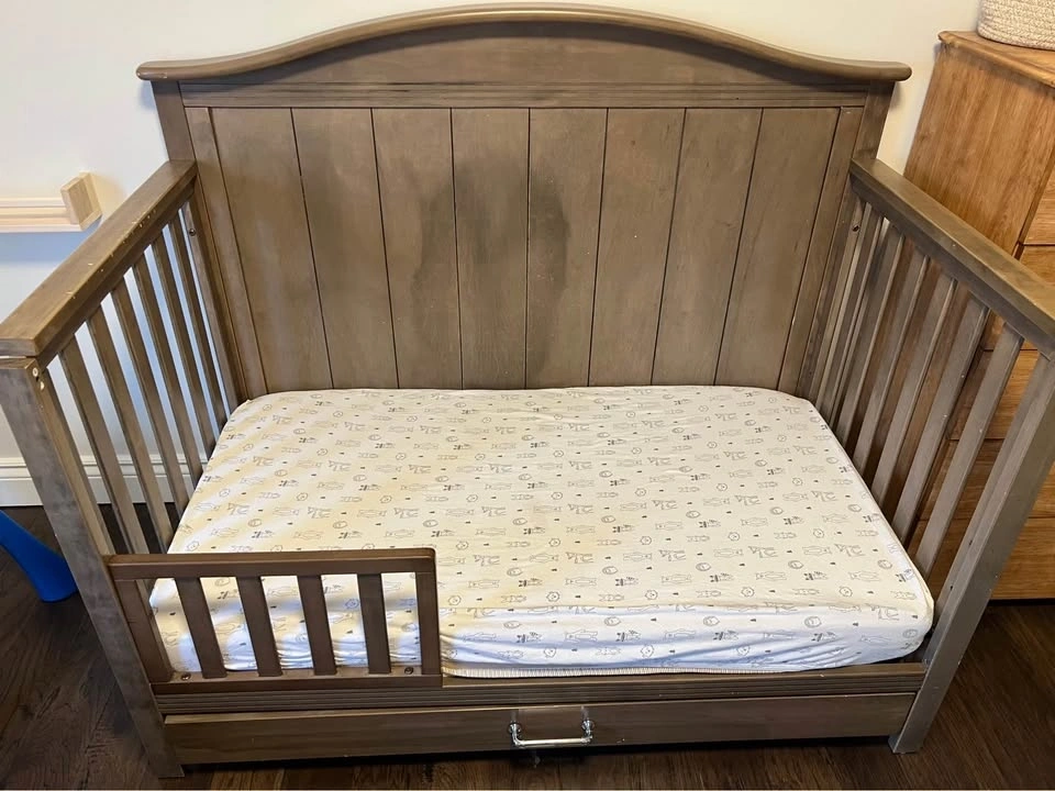 Used for 1.5 years. Converts from crib to toddler bed and twin bed. All parts included.