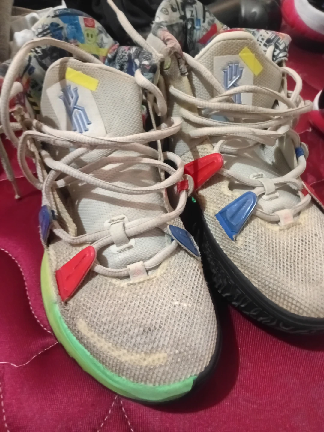 These are Nike Kyrie 7 basketball shoes. They feature a unique lacing system and durable outsole. Designed for performance on the court.