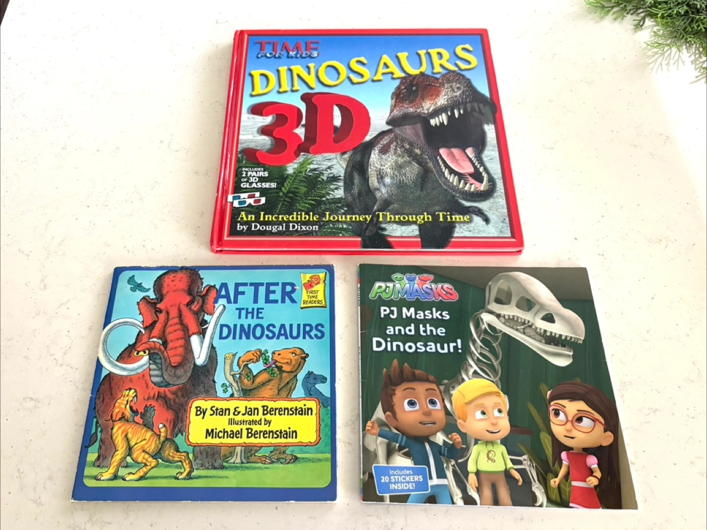 Includes 'TIME for DINOSAURS 3D', 'After the Dinosaurs', and 'PJ Masks PJ Masks and the Dinosaur!'. Great for young dino enthusiasts!
