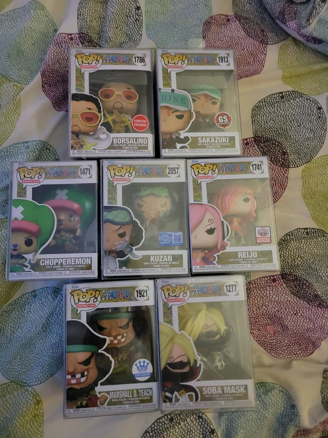Collection of Funko Pop! Vinyl figures from the One Piece anime series. Assorted characters available. Figures are in original boxes. Great for collectors and fans of the series!