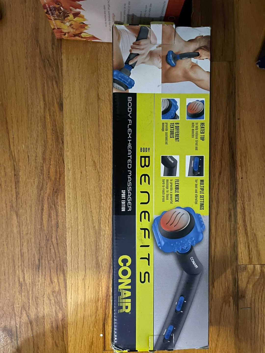 Brand New; NEVER USED!! This Conair Body Benefits massager features a heated tip for relief. It has a flexible neck and 6 different textured massage heads. Multiple settings are available for your comfort.