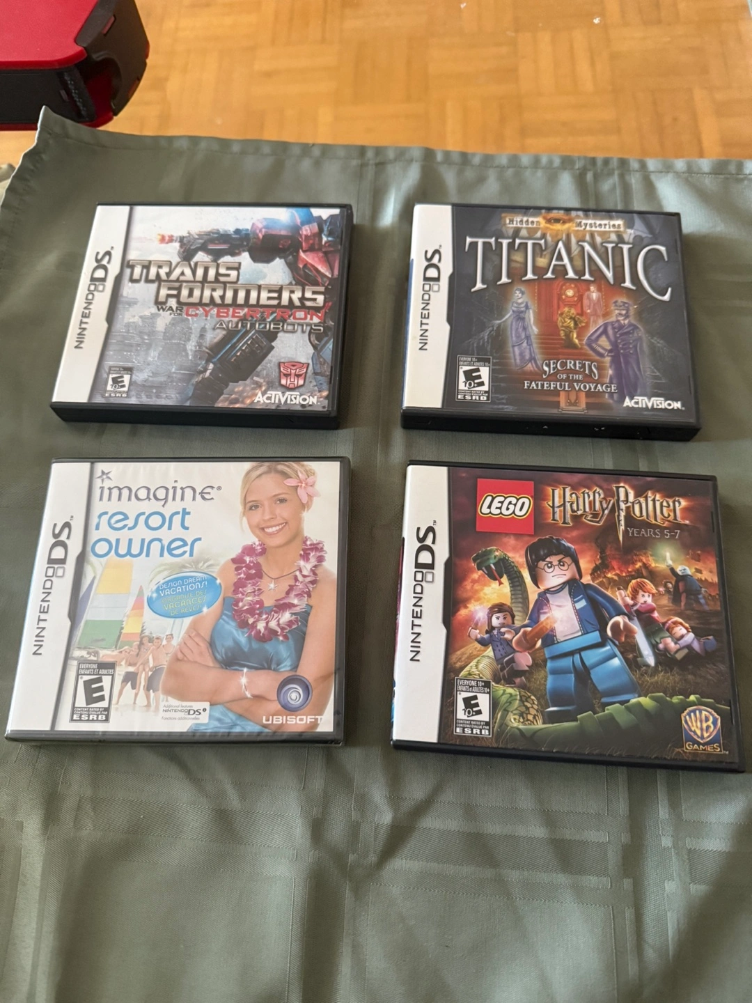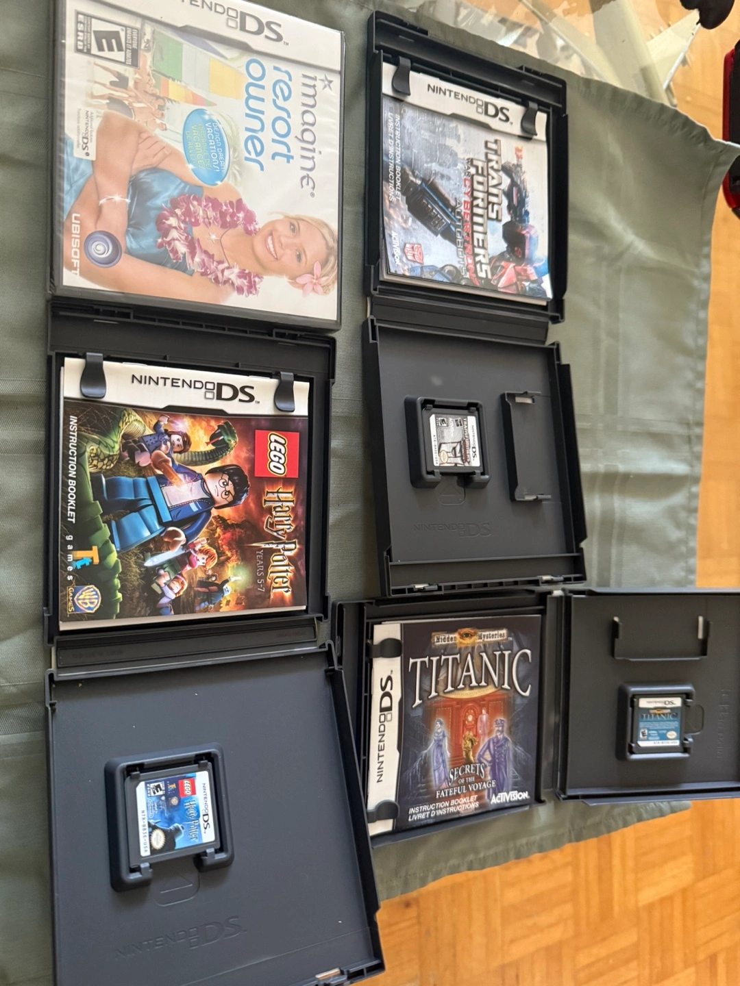 A bundle of Nintendo DS 3 used games and 1 new not open - imagine resort owner.