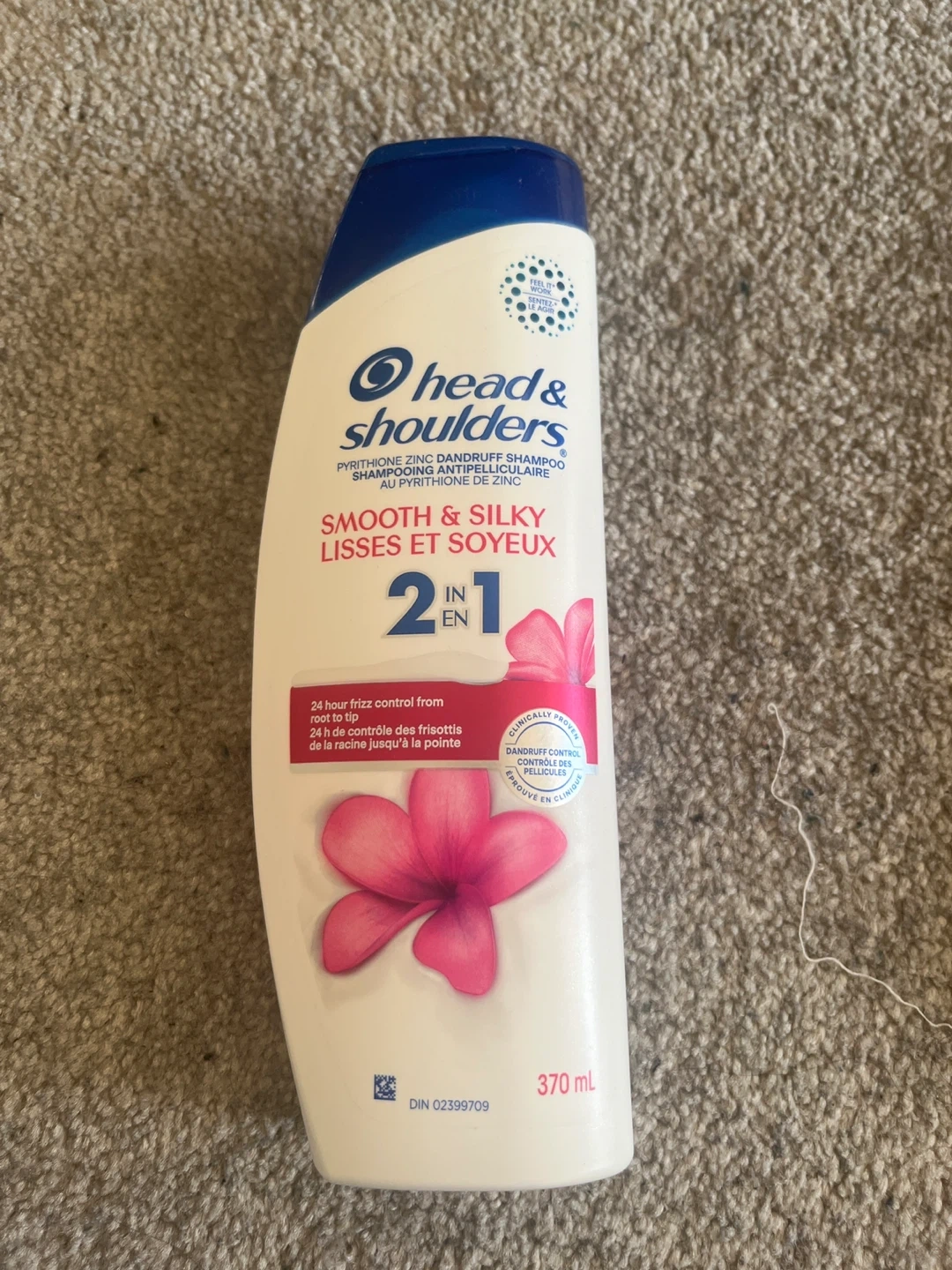 Selling a bottle of Head & Shoulders Smooth & Silky 2 in 1 shampoo. It's a 370mL bottle, perfect for controlling frizz and keeping your hair smooth and silky!