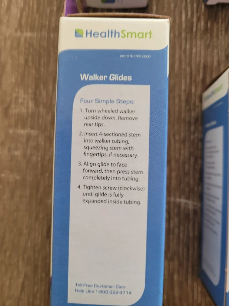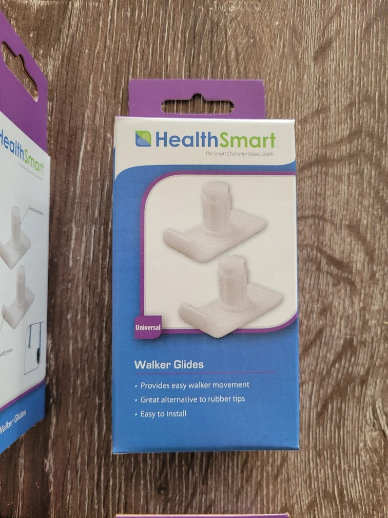 138I have 4 sets of HealthSmart Walker Glides, still new in the box! 5 Dollars per set They offer: - Easy walker movement - Great alternative to rubber tips - Easy to install They are constructed of long-lasting, high-density plastic and fit 7/8" and 1" I.D. (Inside Diameter) tubing, with a 250 lb weight capacity