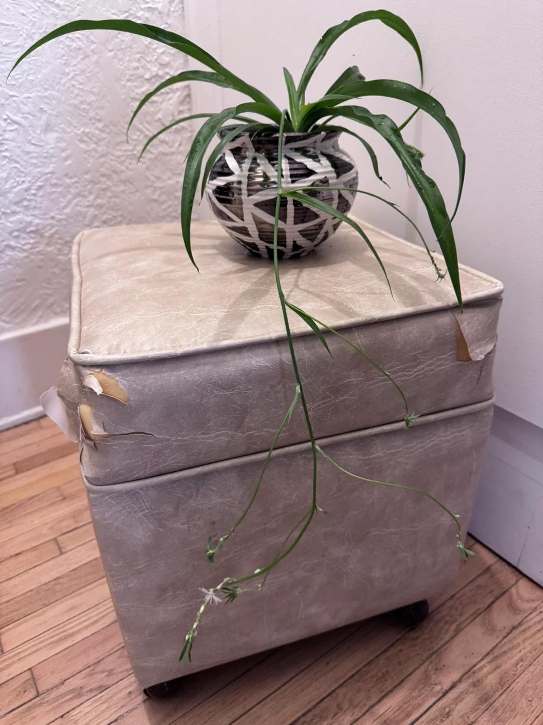 Healthy Strip Spider Plant with baby plants in temporary pot