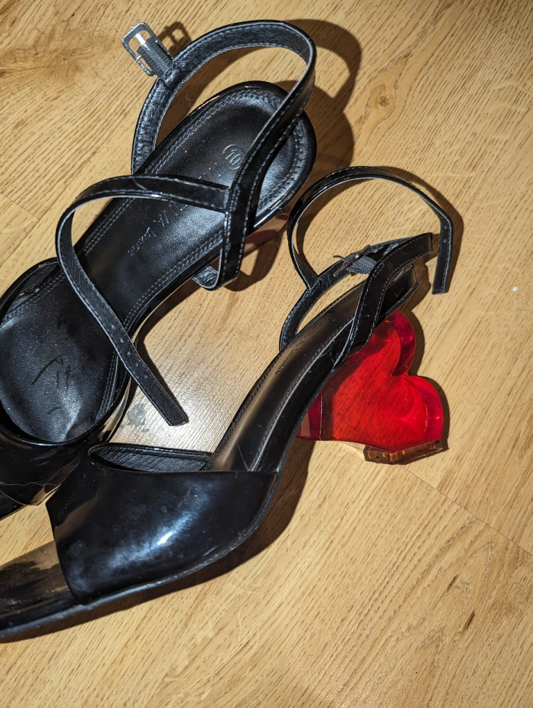 Cute black sandals from Wild Diva Lounge! These fun sandals feature a unique heart-shaped heel. Perfect for adding a little something extra to your outfit! 10$ obo size 10 womens