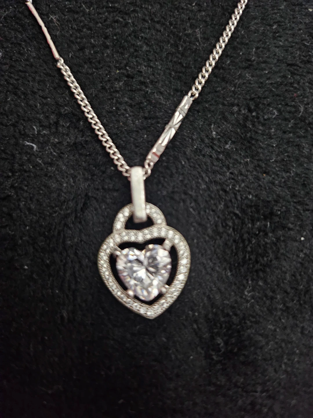 1000+A lovely silver necklace featuring a heart-shaped pendant. It's in great condition and ready to add a touch of sparkle to your outfit!