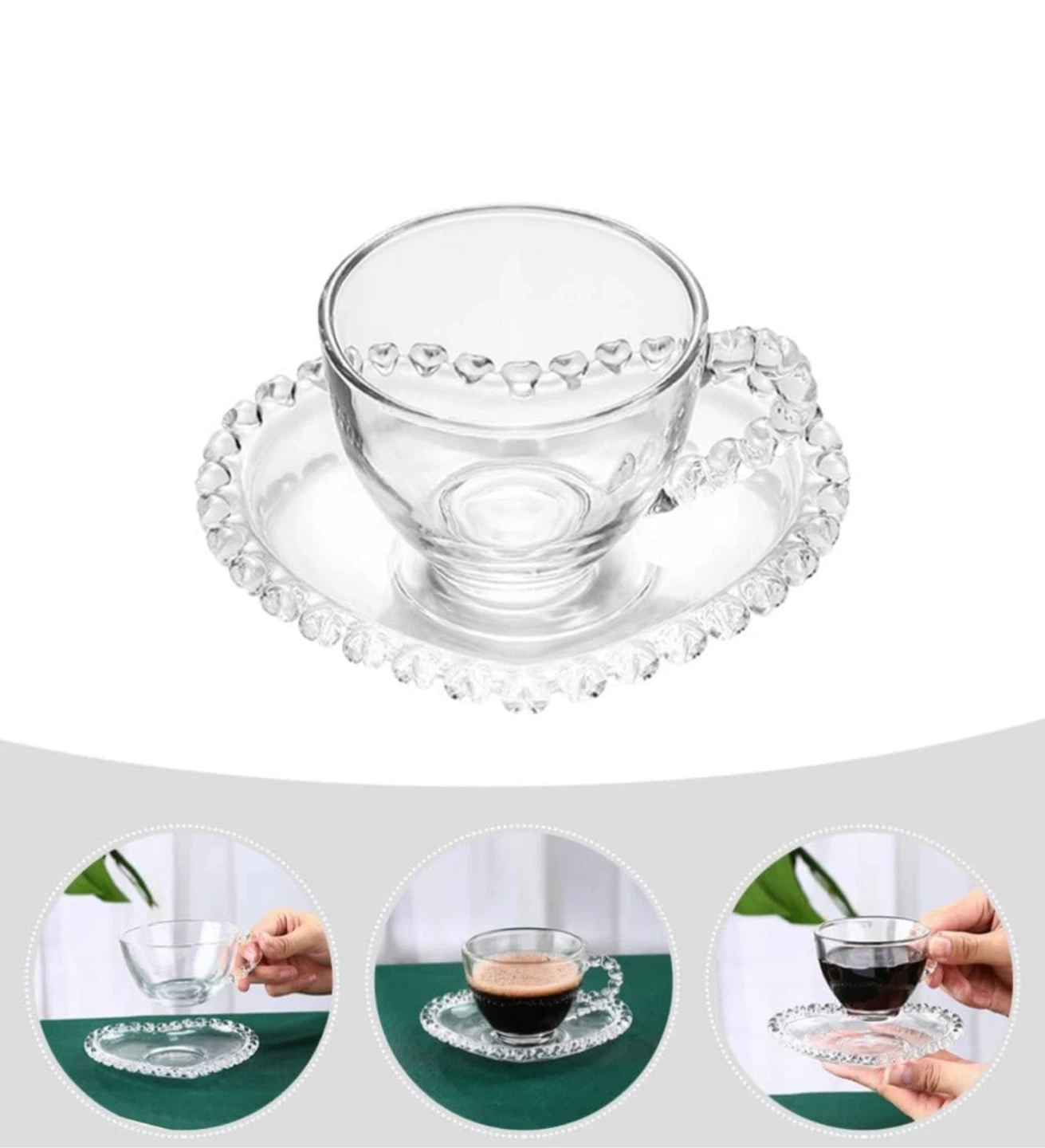 Heart shape Glass Coffee / Tea Cup Saucer Set with Christmas Bag