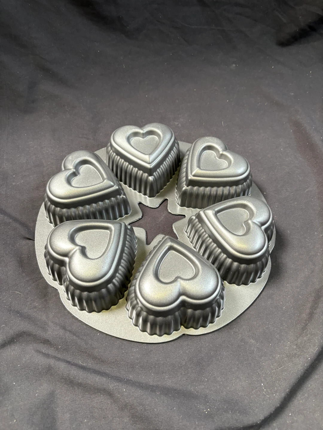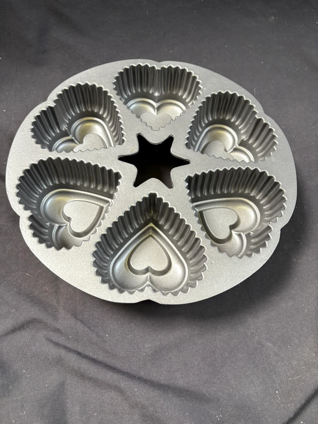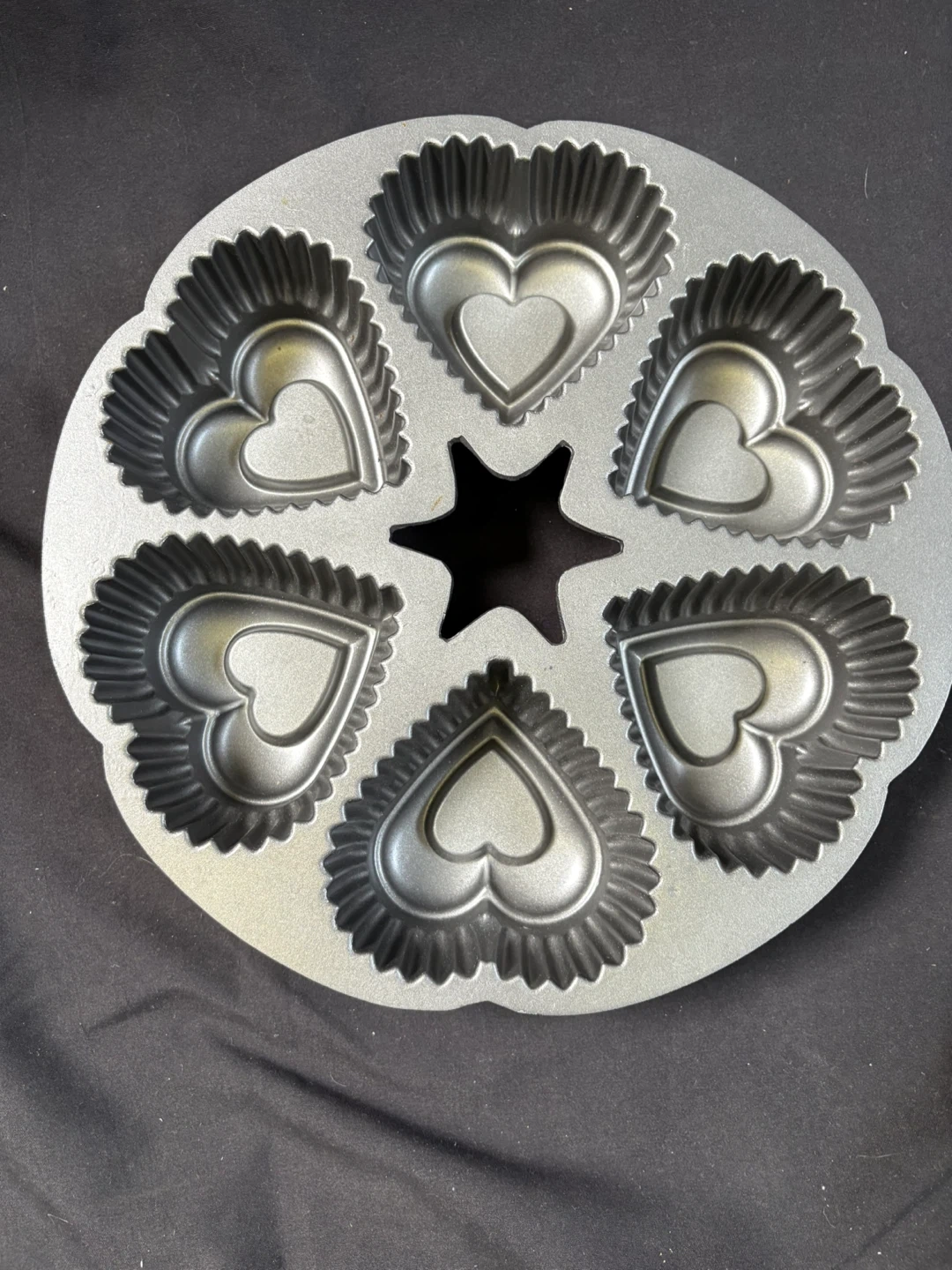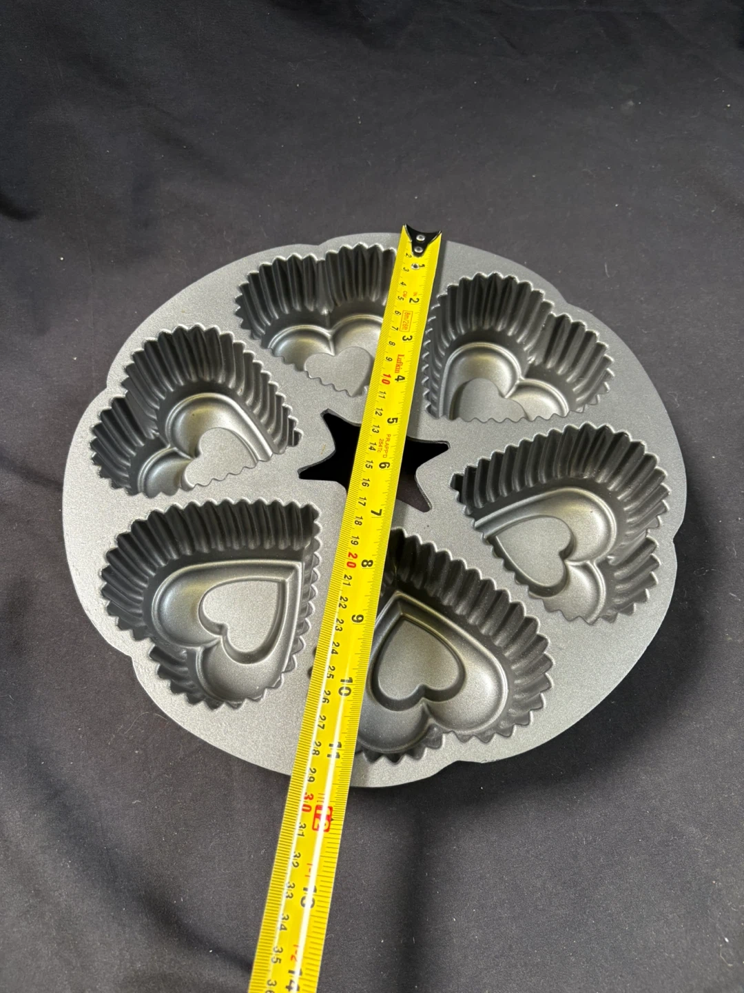 1000+🥕like new Heart Shaped Muffin Pan Selling a muffin pan with heart-shaped molds! It has six heart-shaped molds and a star shape in the middle. It's perfect for baking special treats Measurements in last couple of pics $5 Pick up Victoria Park & O’Connor area