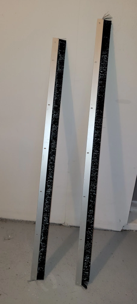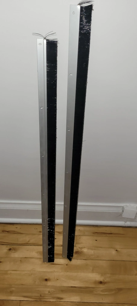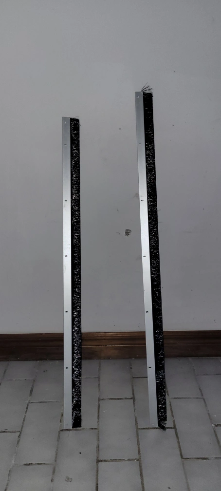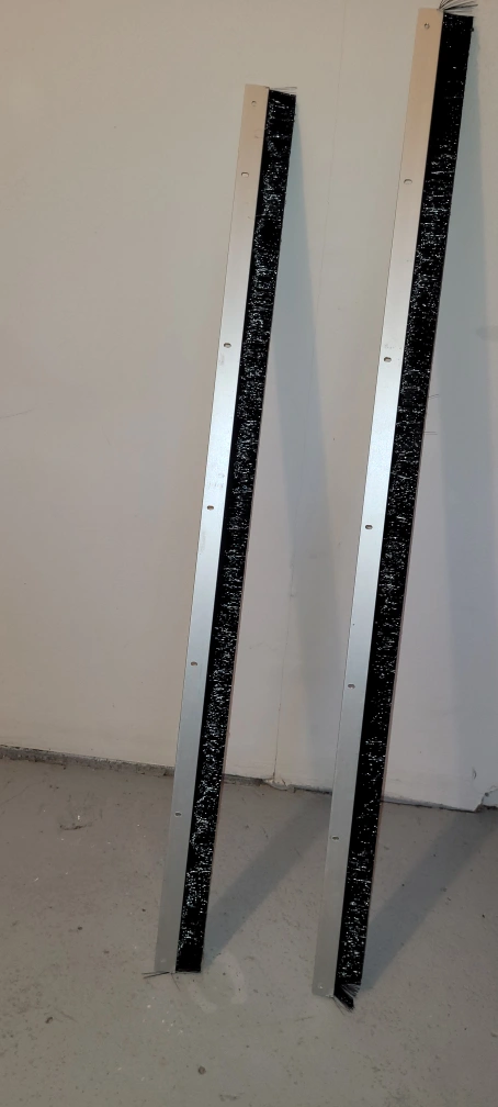 The white color on the bristles is the light reflection. 2 pices Available 85 cm /33.5 Inch and 92 cm / 3 feet $10 each This Heavy-Duty door sweep is made of Heavy-Duty aluminum and nylon brush and can be used commercially or in residential applications and can seal gaps up to 5/8 in. this door sweep keeps warm air in and cold air out. It is installed only on the interior side of the door.