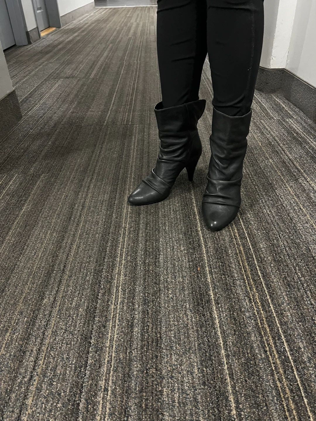1000+🖤size 8.5 🖤They are black leather upper with a synthetic sole. 🖤These boots are in good condition and ready for a new home!
